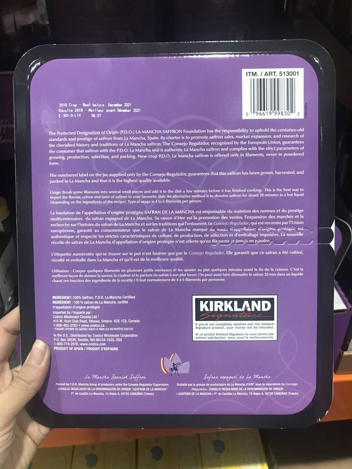 Kirkland Kirkacland *У вас есть *Машина Испанский шафран 1G/бутылка канадская покупка