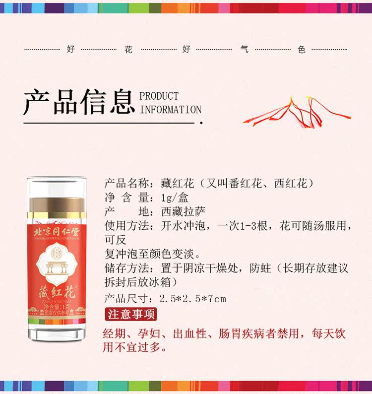Пекин Тонгрентанг шафрановый тибетский шафрон -чайный чай Аутентичный 1 г/бутылка