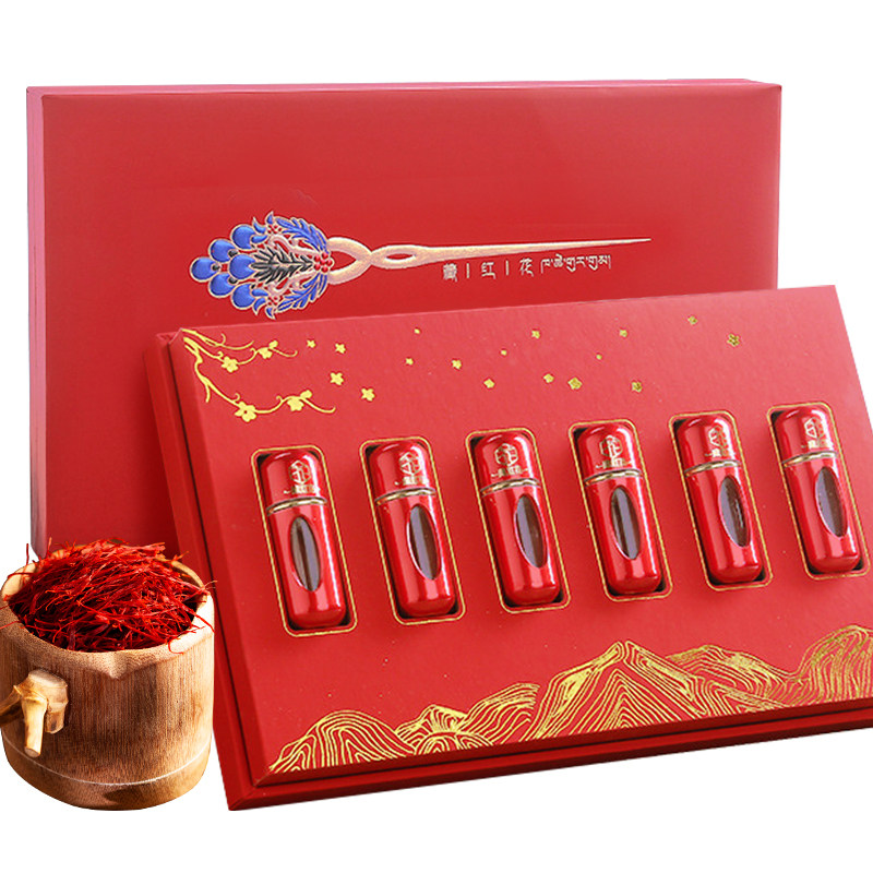 Тибетский шафран 6 грамм подарочная коробка выбранная полная длина красного шелкового шелкового не специфического Xishunhua Safflower питательный подарок питательный подарок