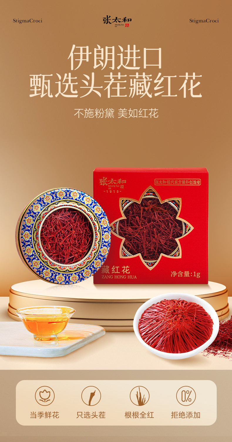 张太和 Шафран 1 г/коробка Неспециальный настоящий шафран, импортированный из Ирана, отборного качества, собранный и превращенный в чай.