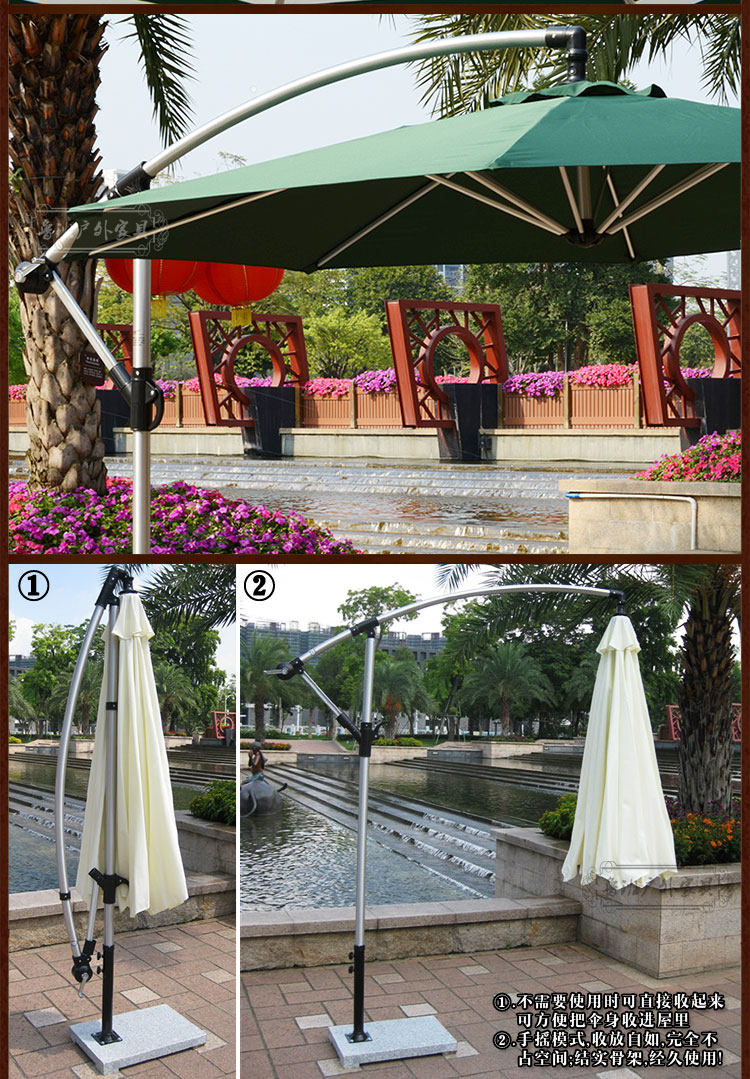Ручная ручная колонна зонтик алюминиевый сплав банановый зонтик Большой висящий зонтик Рекламный двор Солнечный зонтик открытый зон