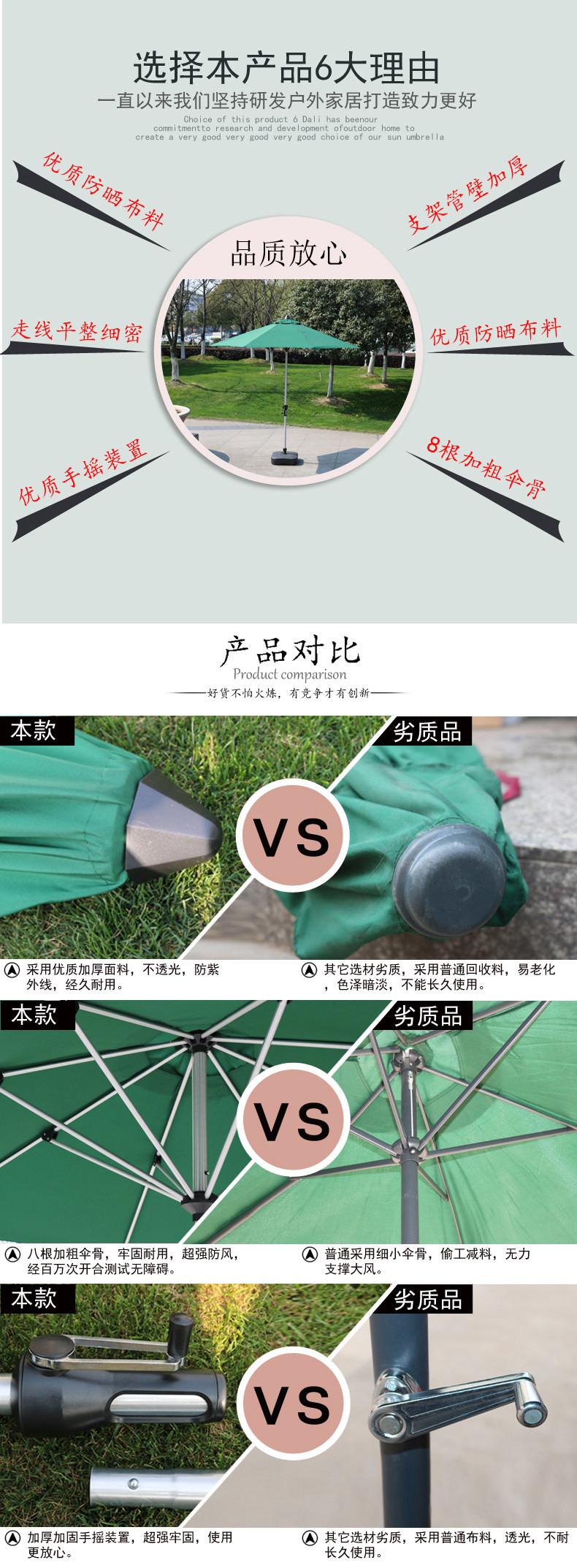 Размер товара:Откройте зонтичную поверхность 2,7 млн., 2,5 м в высоту и диаметр колонны трубки 38 мм