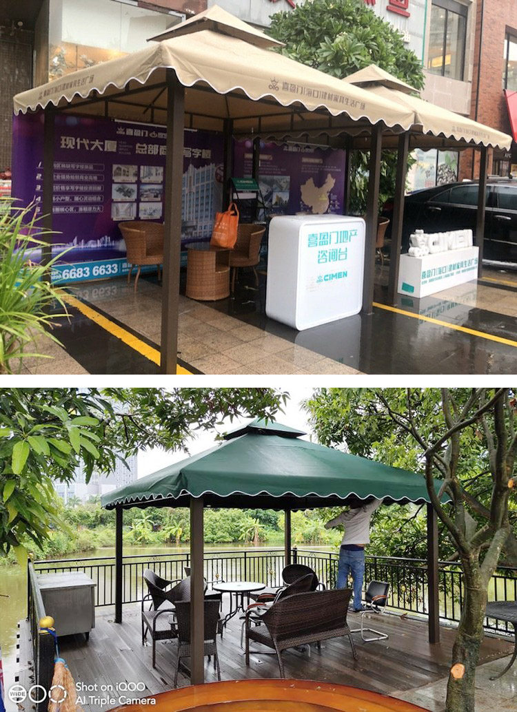 Четырехболотые зонтичные палатки навес в саду.
