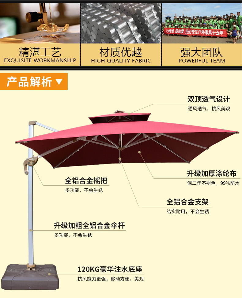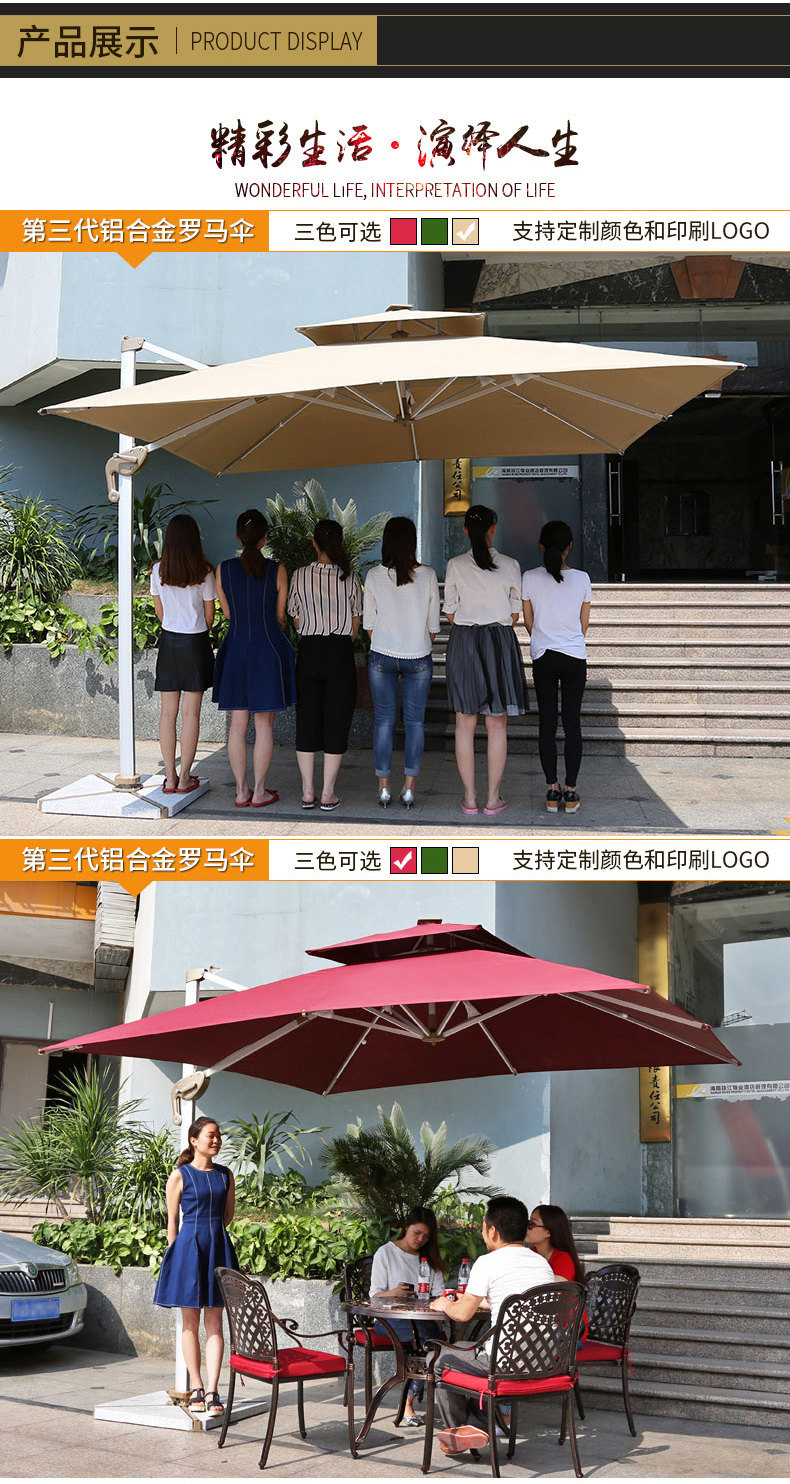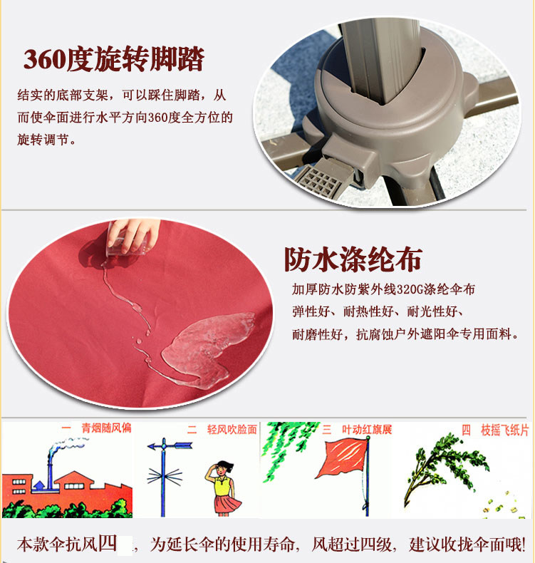 Римский зонтик----360Вращающийся зонт, Это относительно полная функция в открытом зондоме.Вращаться горизонтально в течение неделиЭто также может бытьВключить вертикальное направление90ТратитьСущностьВ настоящее время это творческий досуг на рынке.Подземный мир под зонтиком широкий, а столы и стулья могут быть небрежно размещены;По сравнению с другими зонтиками, это лучше, чем римский зонт, и это удобнее работать.Римский зонтик проходитВращение управления ручкой и подъемВ сберегательных усилиях и беспокойстве.Римский зонтик большой перед зонтиком, общая структура стабильна, а скелет изготовлен из алюминиевых сплавов.Зонтик римского зонтика сделана из густой и плотной тканиСущность