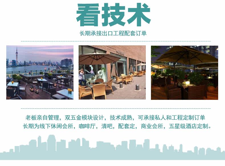 | Применимое место | Семейные вилла, гостиничные террасы, балкон, фальшивые деревни, запеченные бары, музеи красоты и красоты западных ресторанов, отдых на открытом воздухе и т. Д. | ||