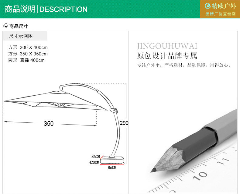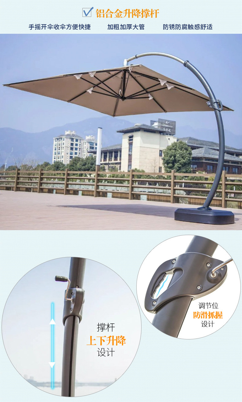 精欧户外 Садовый боковой солнце -зонтик зонтик на открытом воздухе Большой большой солнечный зонтик с открытыми романами -римский висящий зонтик