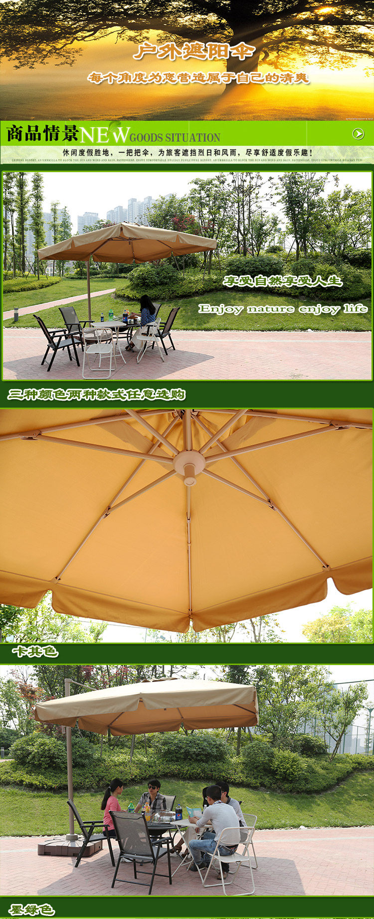 3 -метровый квадратный сингл -римский зонтик— Хаки