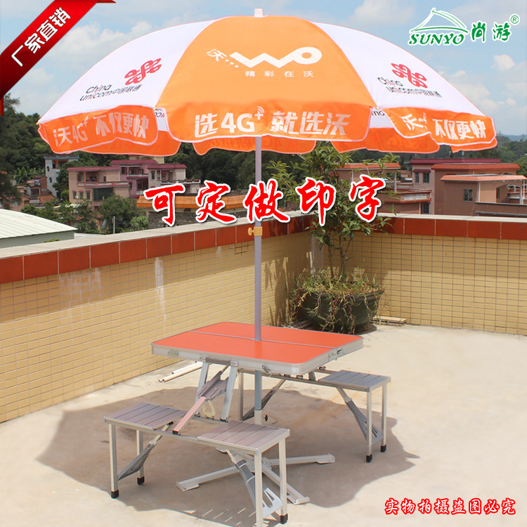 Китай Unicom 5g открытый маркетинг зонтик зонтик плазмы продвижение продвижения по продвижению прогрессивной фарфоровой складной стол и стул