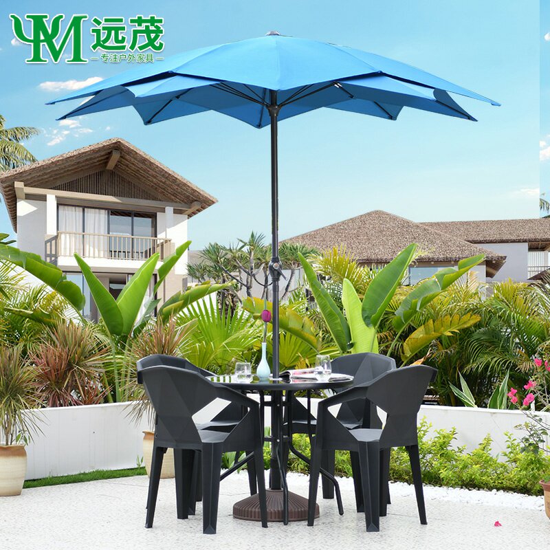 Открытый паразол в середине -колонке зонтичный стол и стул с зонтиком на открытом воздухе Большой солнечный зонтик на открытом воздухе и комбинация кресла