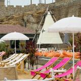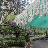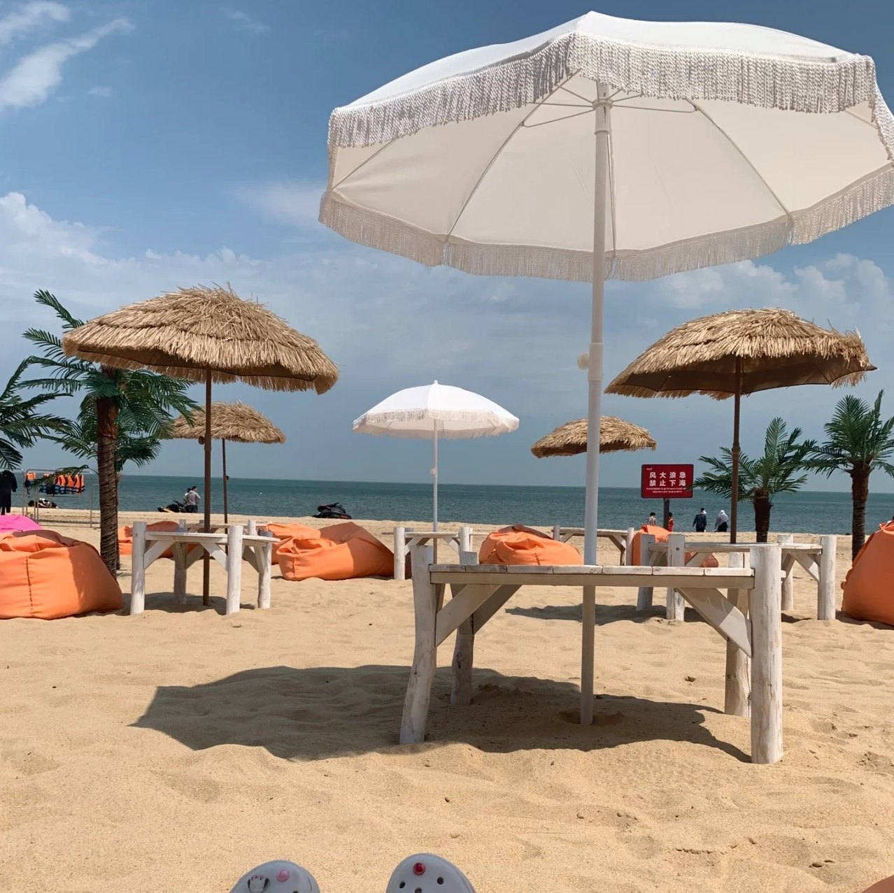 Белый пляжный зонтик на солнечной энергии для отдыха
