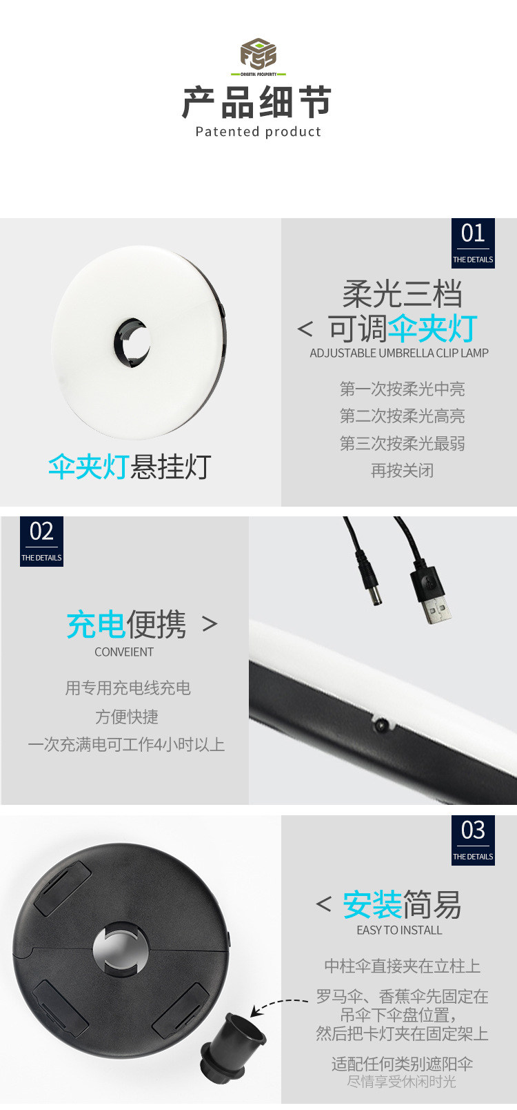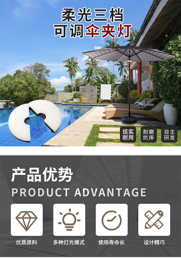 Дорожный светодиодный зонтик с зарядкой для кемпинга, светильник для беседки
