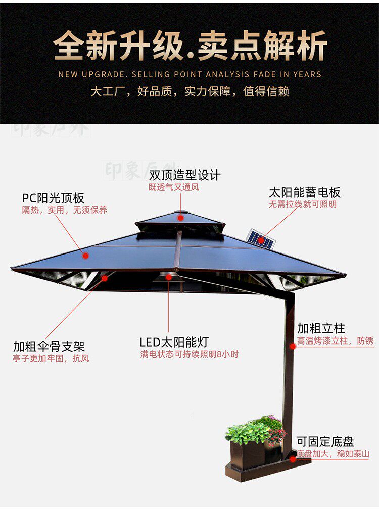 Дорожный зонтик, водонепроницаемая уличная вилла на солнечной энергии с подсветкой