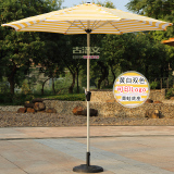 Коммерческий полосатый зонтик на открытом воздухе и стулья солнечные колонны