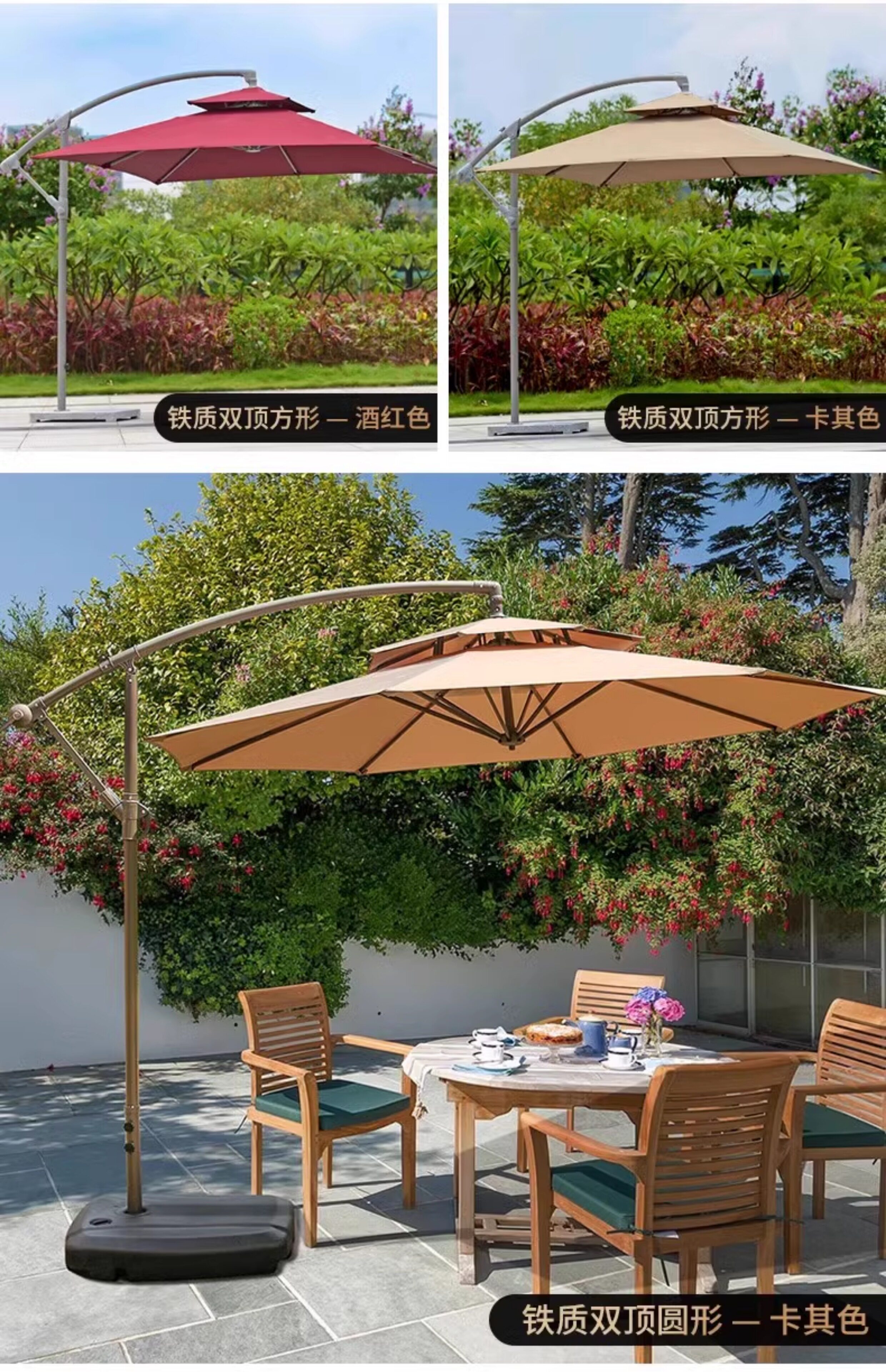 Уличный зонтик с мраморной основой, римский зонтик, синий зонтик-банан, зонтик, стол и стулья, уличный зонт во дворе на первом этаже