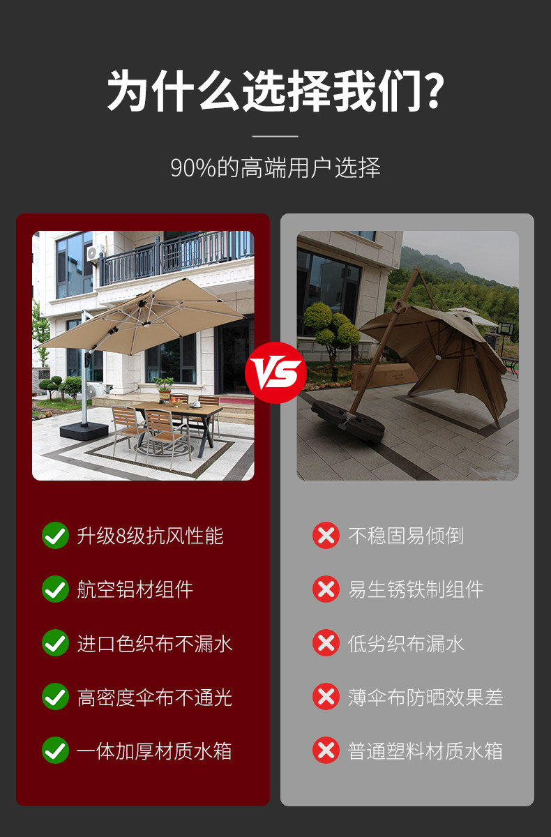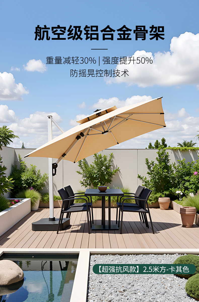 • Суперустойчивая к ветру модель с модернизированными усиленными стержнями и увеличивающим вес резервуаром для воды [уровень защиты от ветра 8] стабильная и более долговечная↓↓↓