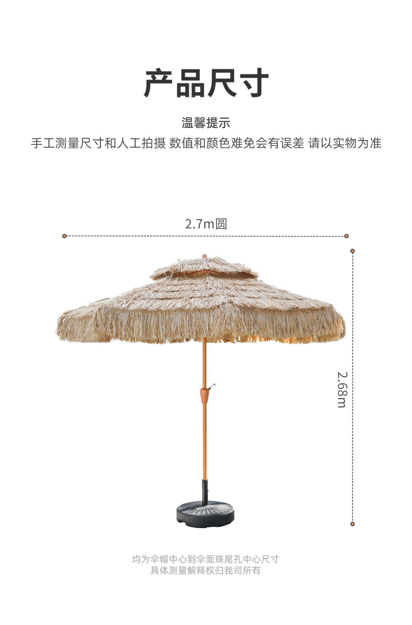 | Характеристики продукта: | Зонт из соломенной центральной колонны 2,7 метра (основание 80 фунтов), Одинарный соломенный зонт + основание 60 кг., Зонт из соломенной центральной колонны 2,7 метра - без базовой версии, Соломенный зонт 2,7 м (основание 80 кг) + Асакура 60 юаней, 1 стол и 2 стула, Соломенный зонт длиной 2,7 м (основание 80 кг) + деревянный клык, 1 квадратный стол и 2 стула., Соломенный зонт с одинарным верхом, без основания, Соломенный зонт 2,7 м (основание 80 кг) + складной стул из красной фасоли, Соломенный зонт 2,7 м (основание 80 кг) + складной стул из красной фасоли + журнальный столик-маяк, Соломенный зонт 2,7 м (основание 80 кг) + складной стул из красной фасоли + журнальный столик в виде маяка + шезлонг Маньшань, Соломенный зонт 2,7 м (основание 80 кг) + складной стул из красной фасоли + журнальный столик какао + шезлонг Маньшань, Зонт-банан из соломы 3 м (основание 120 кг), 2,7-метровый двойной деревянный зонт с центральной колонной [доступно пять цветов] без резервуара для воды, Двойной деревянный зонт с центральной колонной высотой 2,7 м (цвет хаки) + резервуар для воды на 80 кг., Двойной деревянный зонт с центральной колонной длиной 2,7 м [беловатый] + резервуар для воды на 80 кг., Двойной деревянный зонт с центральной колонной, 2,7 м, [коричневый] + резервуар для воды на 80 кг., Деревянный зонт с двойной вершиной и центральной колонной длиной 2,7 м [бордовый красный] + резервуар для воды на 80 кг., Двойной деревянный зонт с центральной колонной длиной 2,7 м (темно-зеленый) + резервуар для воды на 80 кг., Комбинация стола и стула: зонтик с центральной колонной 2,7 м + резервуар для воды 80 кг + 2 стула Yunqi., Комбинация стола и стула: зонтик на центральной колонне длиной 2,7 м + резервуар для воды 80 кг + 2 удобных стула., Комбинация стола и стула: зонт с центральной колонной высотой 2,7 м + резервуар для воды 80 кг + 2 стула Qiyue, Комбинация стола и стула: зонт с центральной колонной высотой 2,7 м + резервуар для воды 80 кг + 2 стула Yunqi + квадратный стол., Комбинация стола и стула: зонт с центральной колонной высотой 2,7 м + резервуар для воды 80 кг + 2 стула Shuxin + квадратный стол., Комбинация стола и стула: зонтик с центральной колонной высотой 2,7 м + резервуар для воды 80 кг + 2 стула Qiyue + квадратный стол., Комбинация стола и стула: зонт с центральной колонной 2,7 м + резервуар для воды 80 кг + 2 стула Yunqi + длинный стол., Комбинация стола и стула: зонтик с центральной колонной высотой 2,7 м + резервуар для воды 80 кг + 2 стула Qiyue + длинный стол., Комбинация стола и стула: зонтик с центральной колонной высотой 2,7 м + резервуар для воды 80 кг + 2 неглубоких стула вишневого цвета + круглый стол 60 см., Римский соломенный зонт площадью 2,5 м (основание 240 кг), Римский зонт из соломы 3 м (основание 300 кг), Римский соломенный зонт площадью 3 метра (основание 300 кг) + длинный ветровой стол с 4 ветровыми стульями., Квадратный соломенный римский зонт 3 м (основание 300 кг) + длинный стол «банановый дождь» с 6 падающими стульями сливового цвета. |