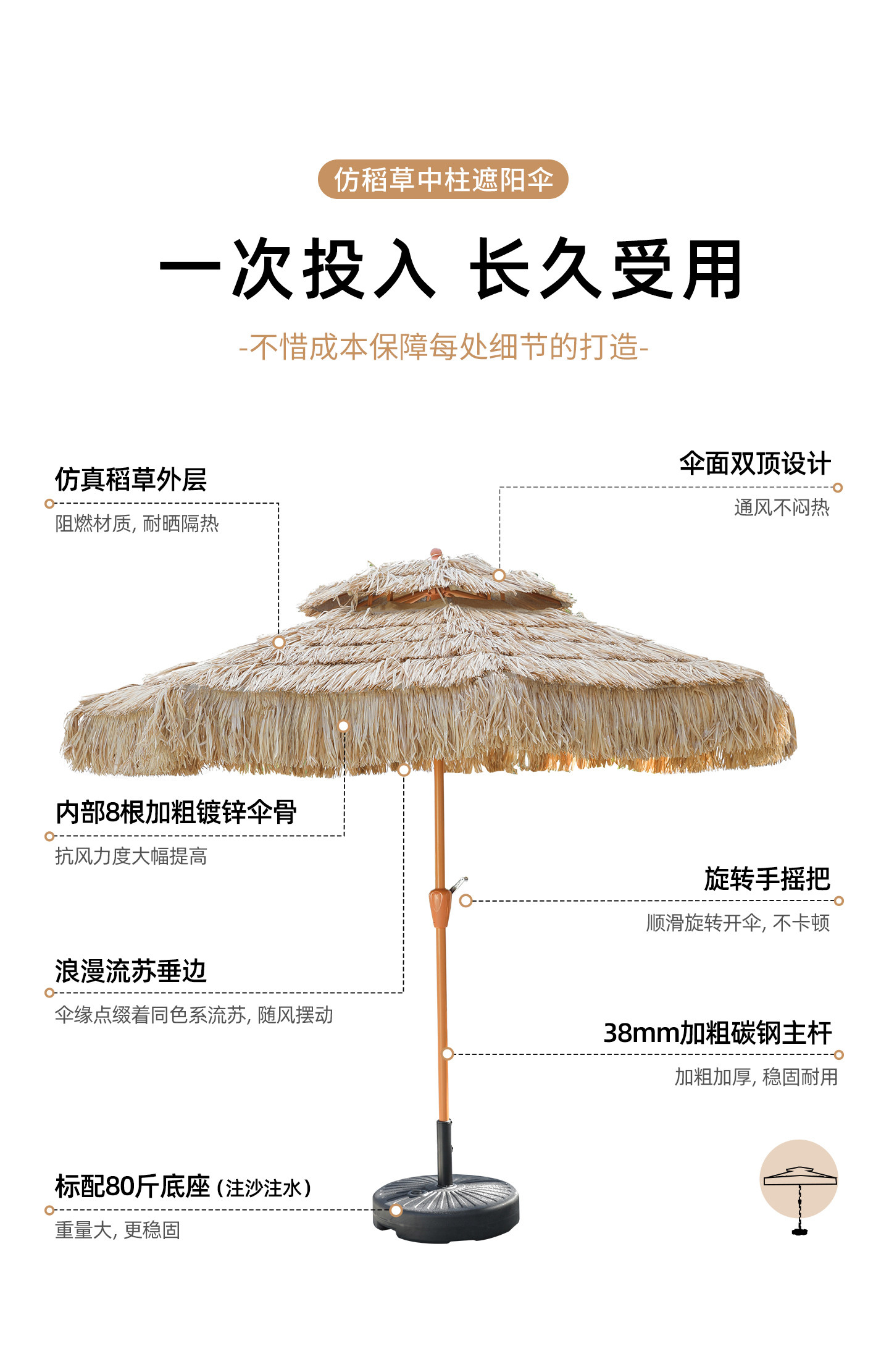 美齐 Уличный зонт с соломенной крышей, зонт из искусственной соломы, зонт от солнца, пляжный зонт, зонтик во дворе, живописный отель типа «ночлег и завтрак», зонтик от солнца интернет-знаменитости