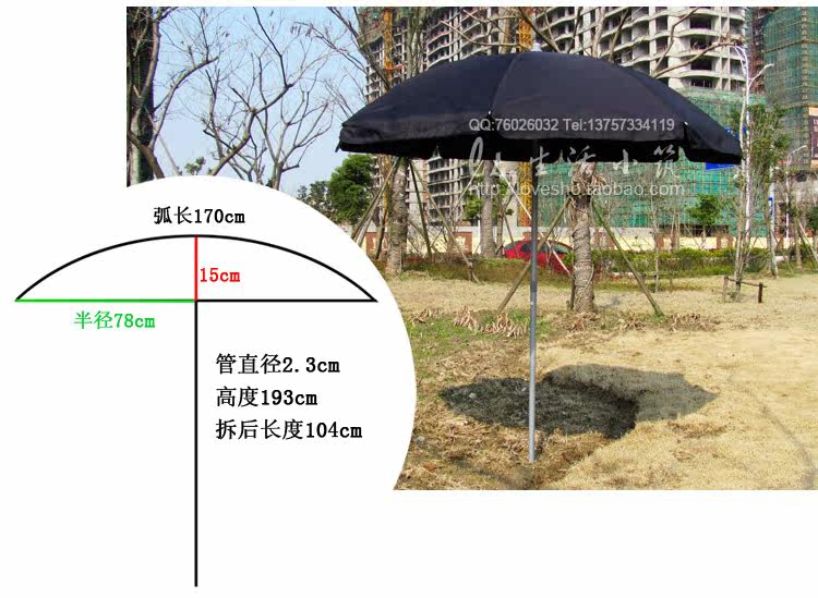 Дуга имеет длину 2,4 метра, а зонтик имеет высоту 1,85 метра