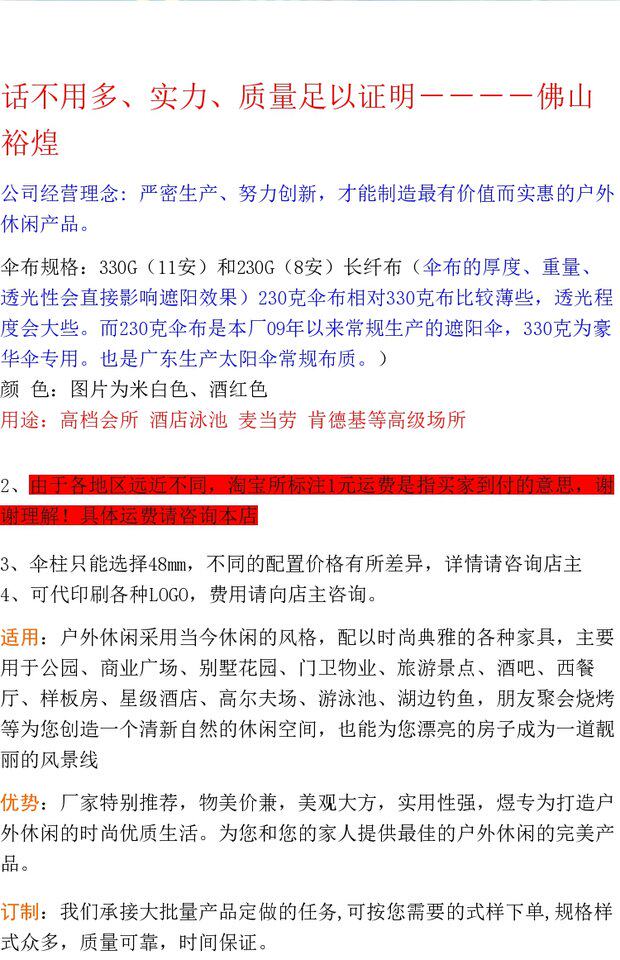 | Цвет: | 2.7m6 Anbu, пожалуйста, отметьте цвет, 2.7m8 Anbu, пожалуйста, отметьте цвет, 3,0m11 Anbu, пожалуйста, отметьте цвет, 2.5*2,5M11 ANBU, пожалуйста, заметите цвет, 2.5*2,5m11, 3*3m11 Антерельская ткань, пожалуйста, отметьте цвет, 1,8 м Старбакс Объективная ткань, пожалуйста, замечают цвет, Внутренняя импортная ткань+100-200 юаней может быть гарантировано в течение 3 лет без возвращения цвета, Импортная ткань Тайваня+180-300 Юань может быть гарантировано в течение 2 лет без возвращения цвета, Тайвань импортированная ткань+350-450 Юань может быть гарантировано в течение 4 лет без возвращения цвета, Импортная ткань в Соединенных Штатах, 160 Юань/Код можно хранить в течение 10 лет без возврата |
