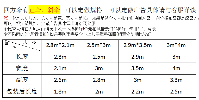 - 3 метра*4 метра, чтобы исправить диагональный зонт шесть выстрелов