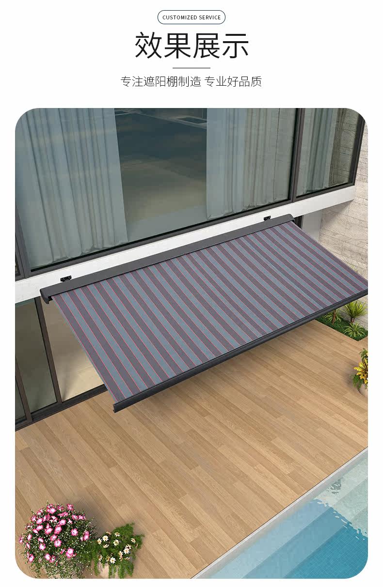 常佰 Затененный сарай складной телескопический электрический усаживаемый солнечный балкон балкон на открытом воздухе алюминиевый сплав.