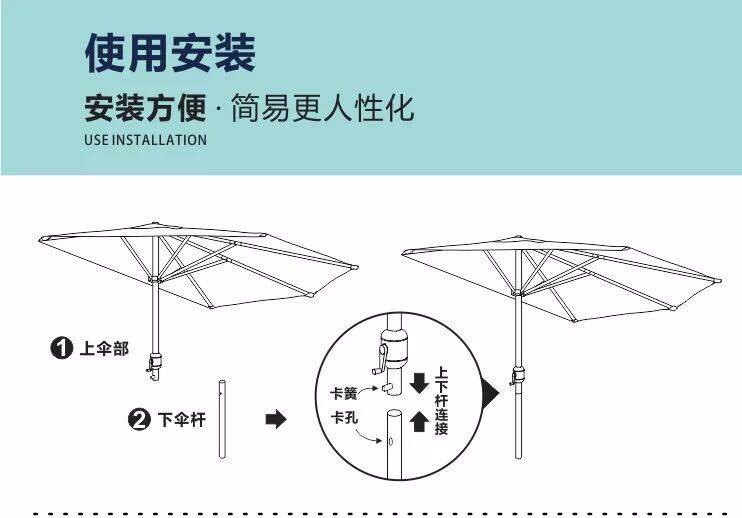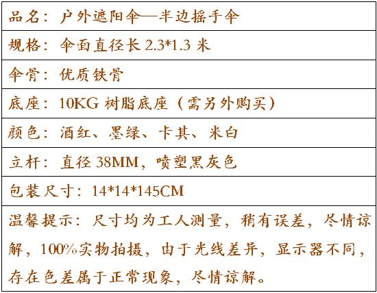 Fordless Semi -Round Umbrella: 1,5*3 метра Упаковка Размер:14*14*145CM