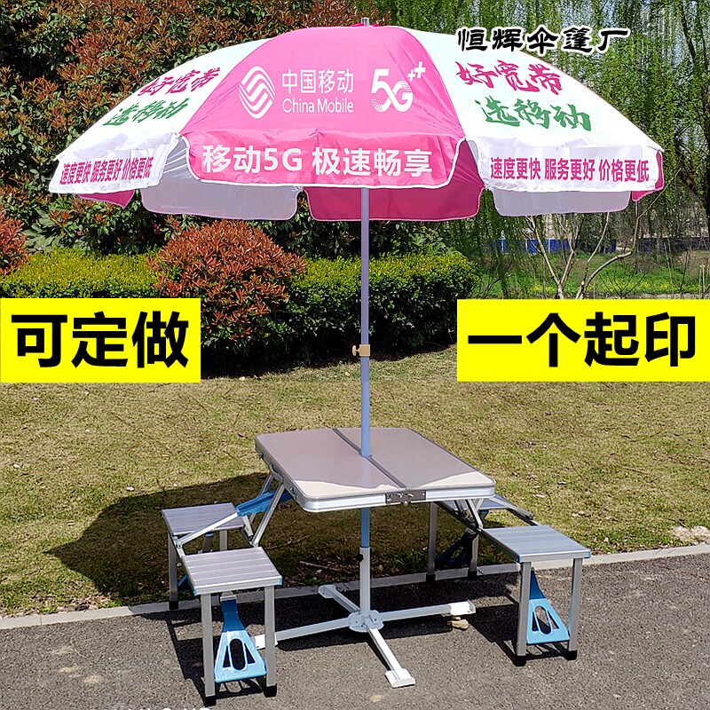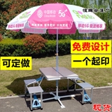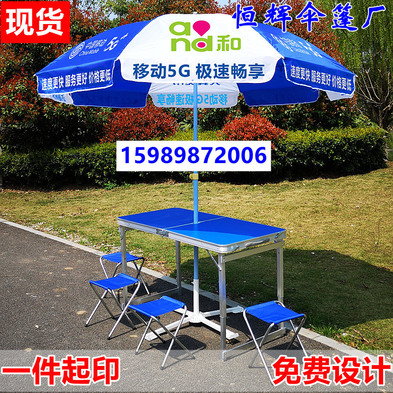 Рекламные столы и стулья складывают мобильный зонтик на открытом воздухе