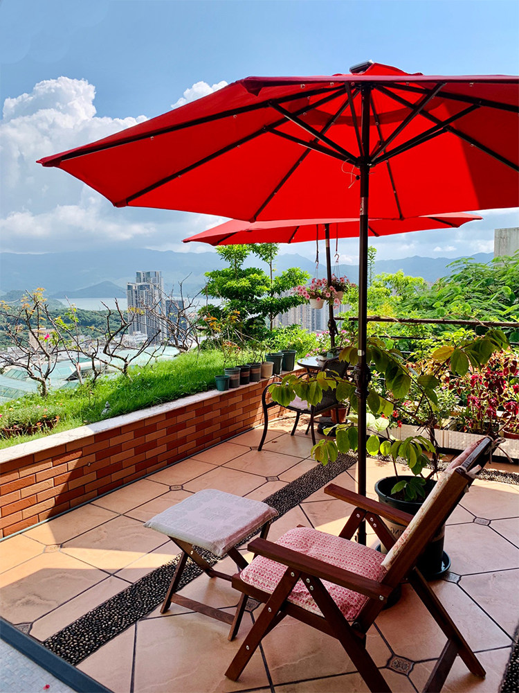 На открытом воздухе на открытом воздухе на открытом воздухе на открытом воздухе открытый балконный сад сад зонтик кофейня со столами и стульями, чтобы установить стойл с большим солнечным зонтиком