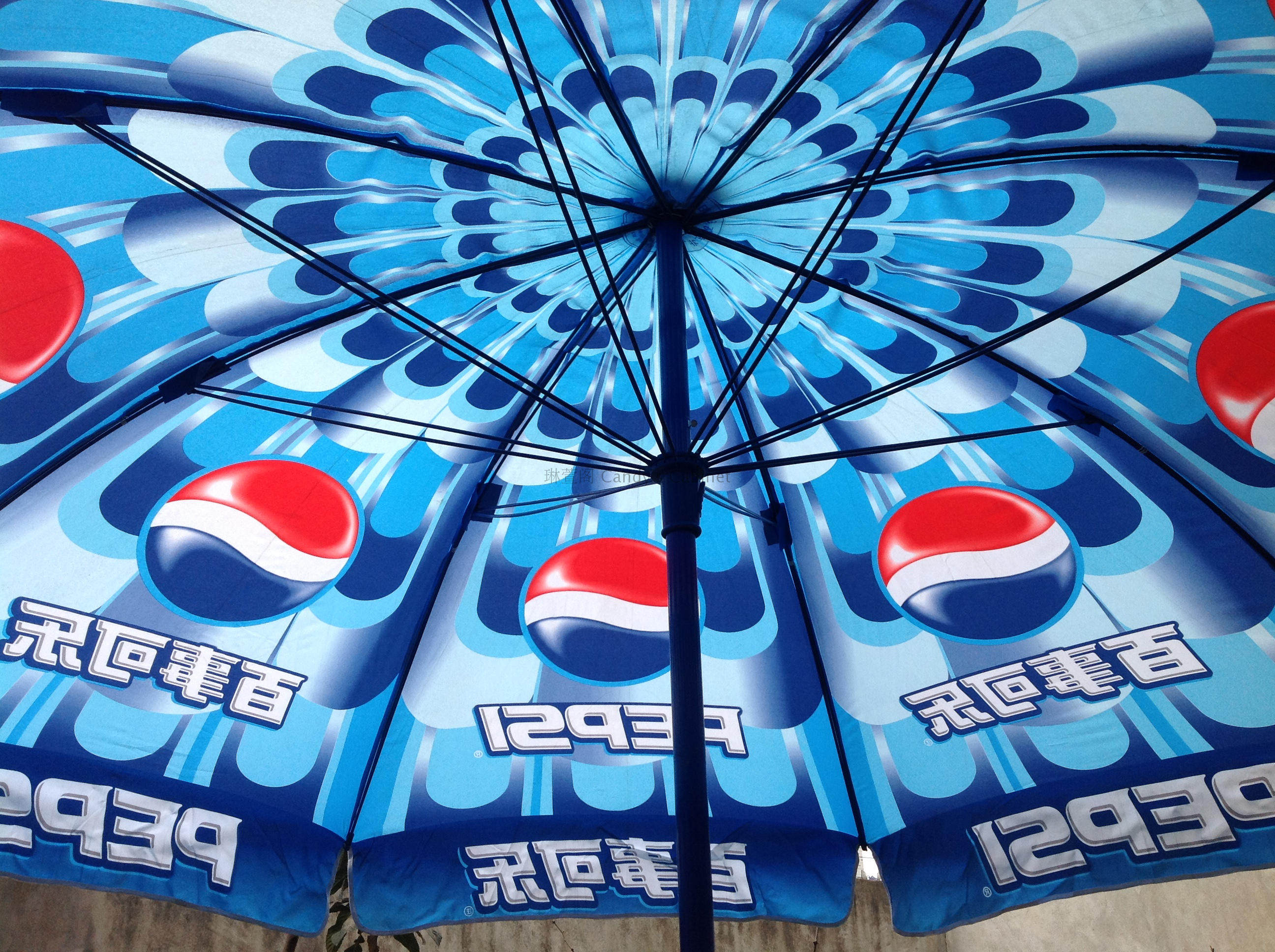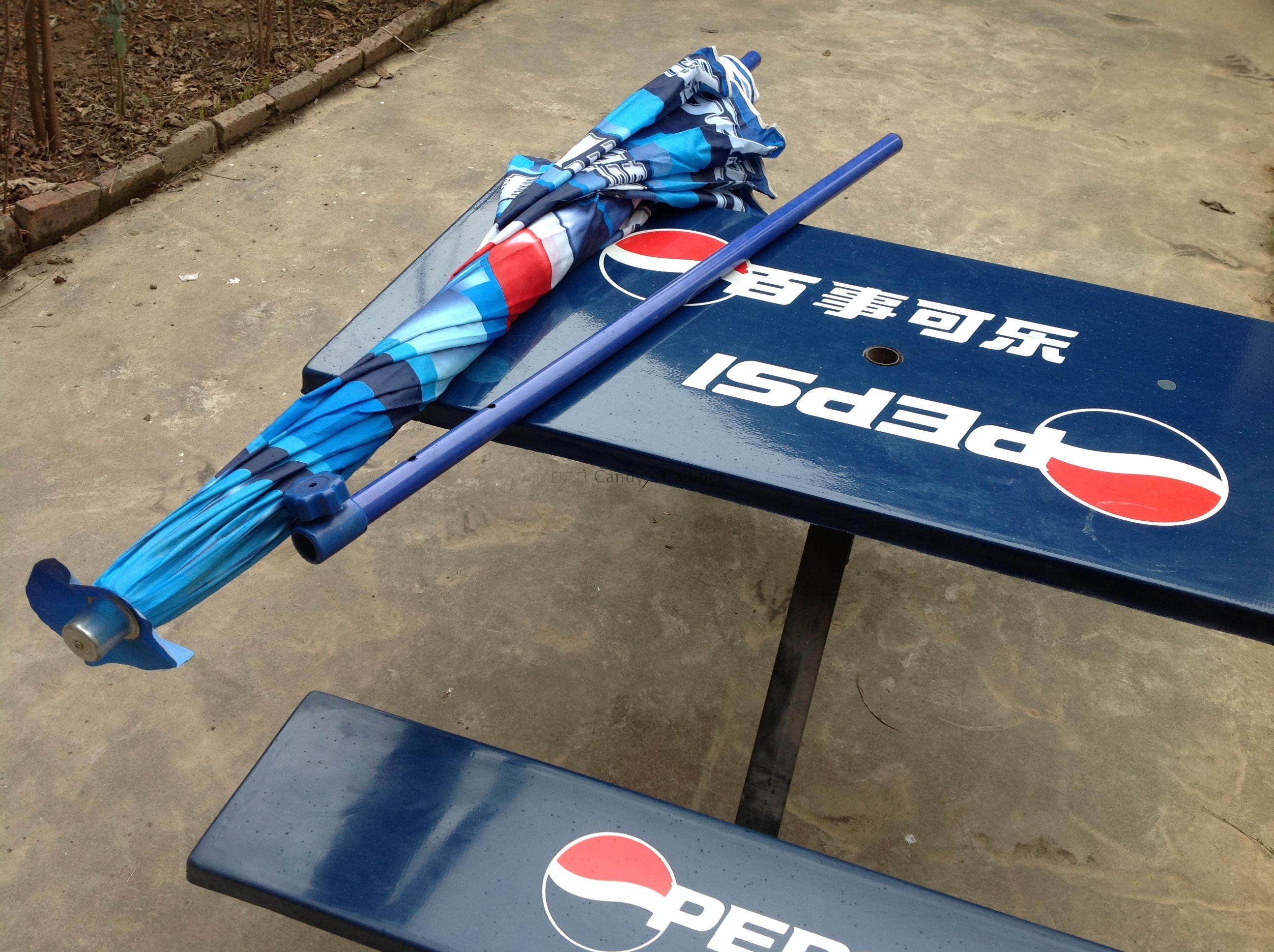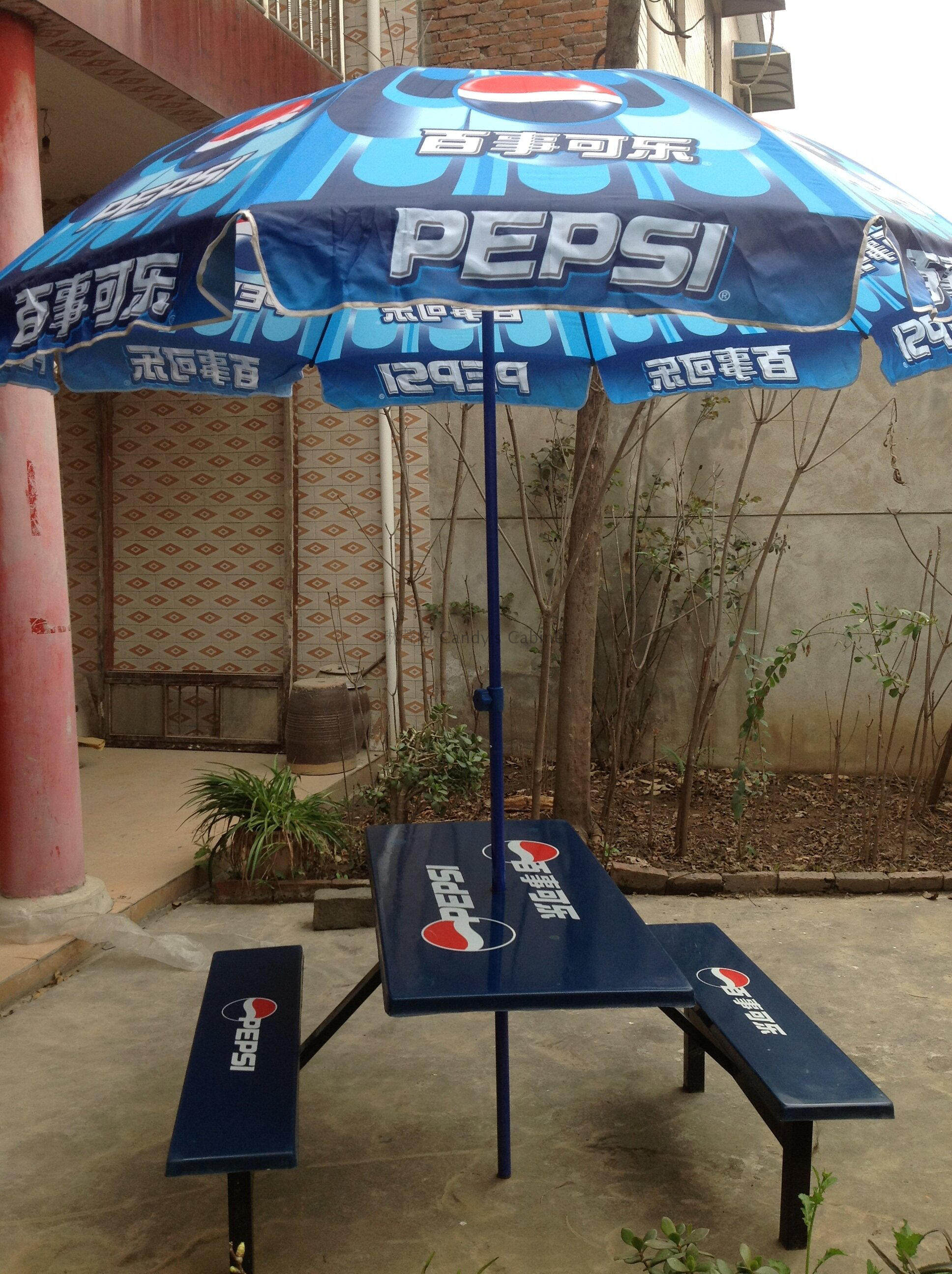 Пепси кола на открытом воздухе на открытом воздухе комбинированные столы и стулья рыбалка зонтично зонтик зонтик зонтик холодный напиток зонтик