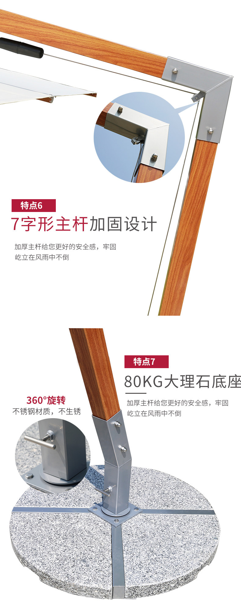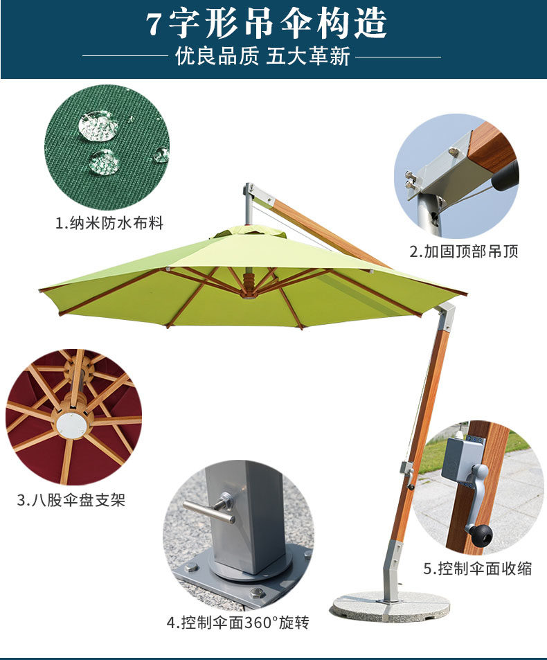 Shanglun Outdoor Parasol Garden Umbrella Имитация дерева все алюминиевое зонтик боковой зонтик римский зонтик на открытом воздухе открытая зонтика