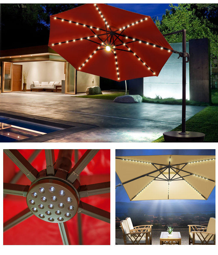 Открытый зондовый двор зонтик балконы Терраса солнцезащитный сад солнцезащитный сад с лампами с лампами, чтобы развернуть большой солнечный зонтик