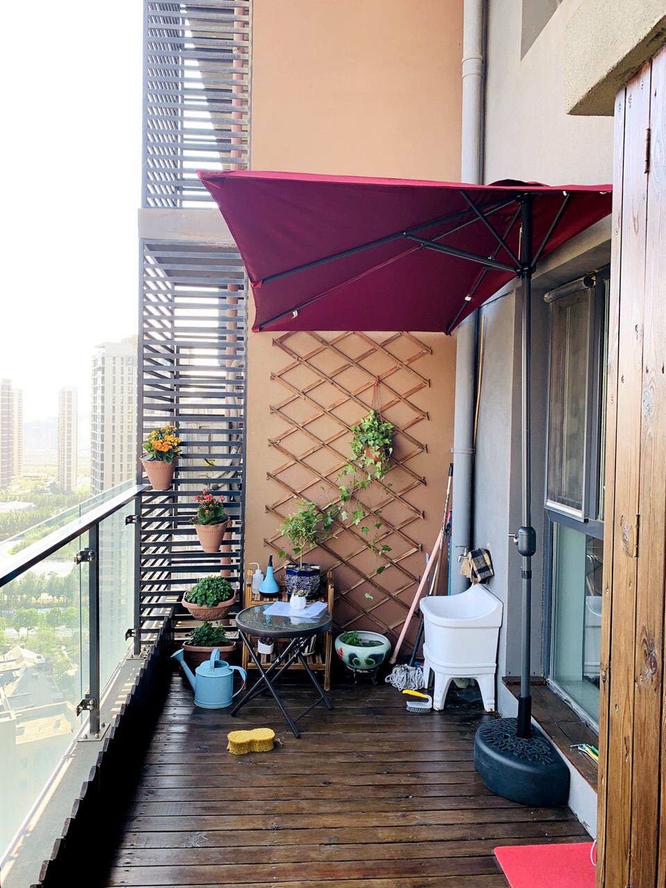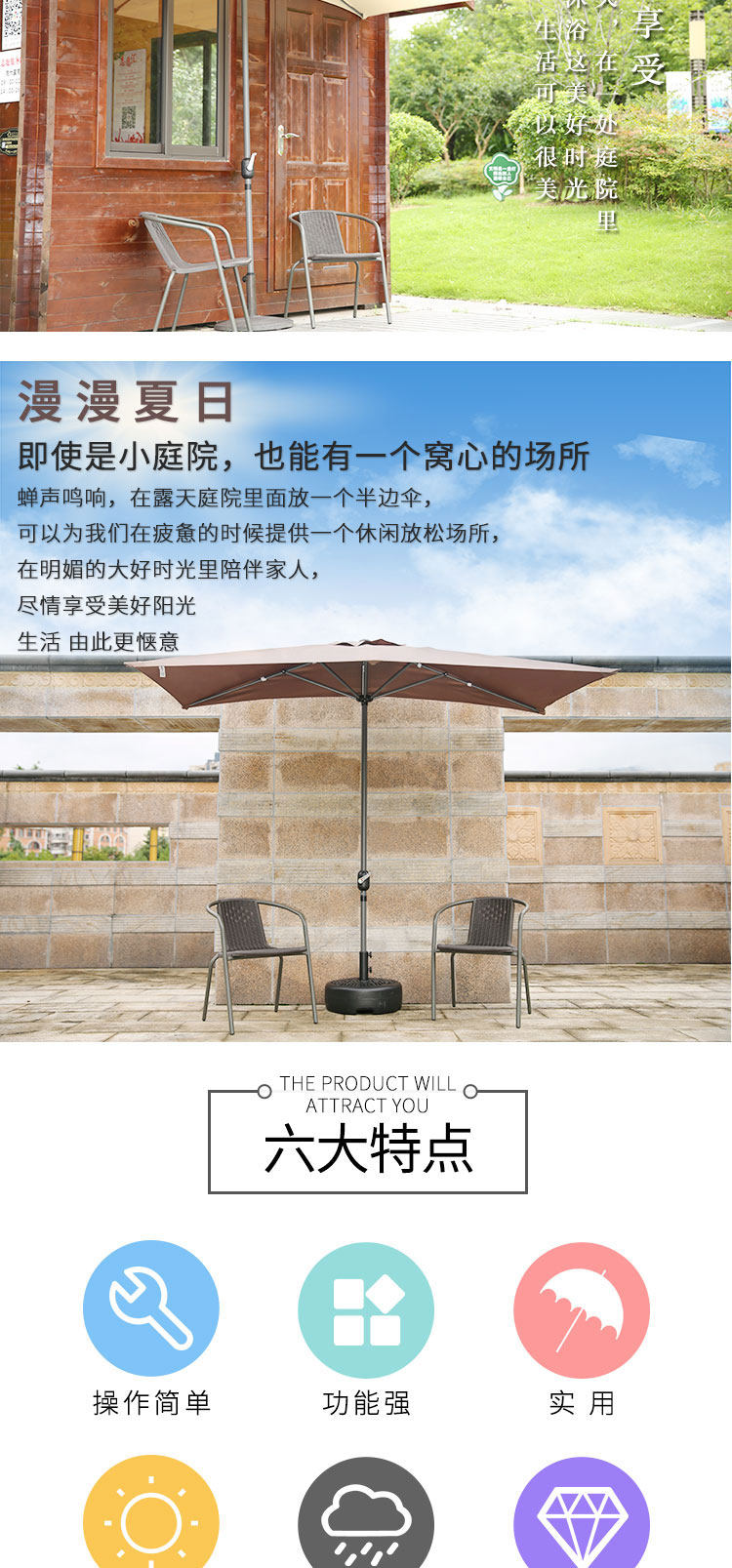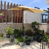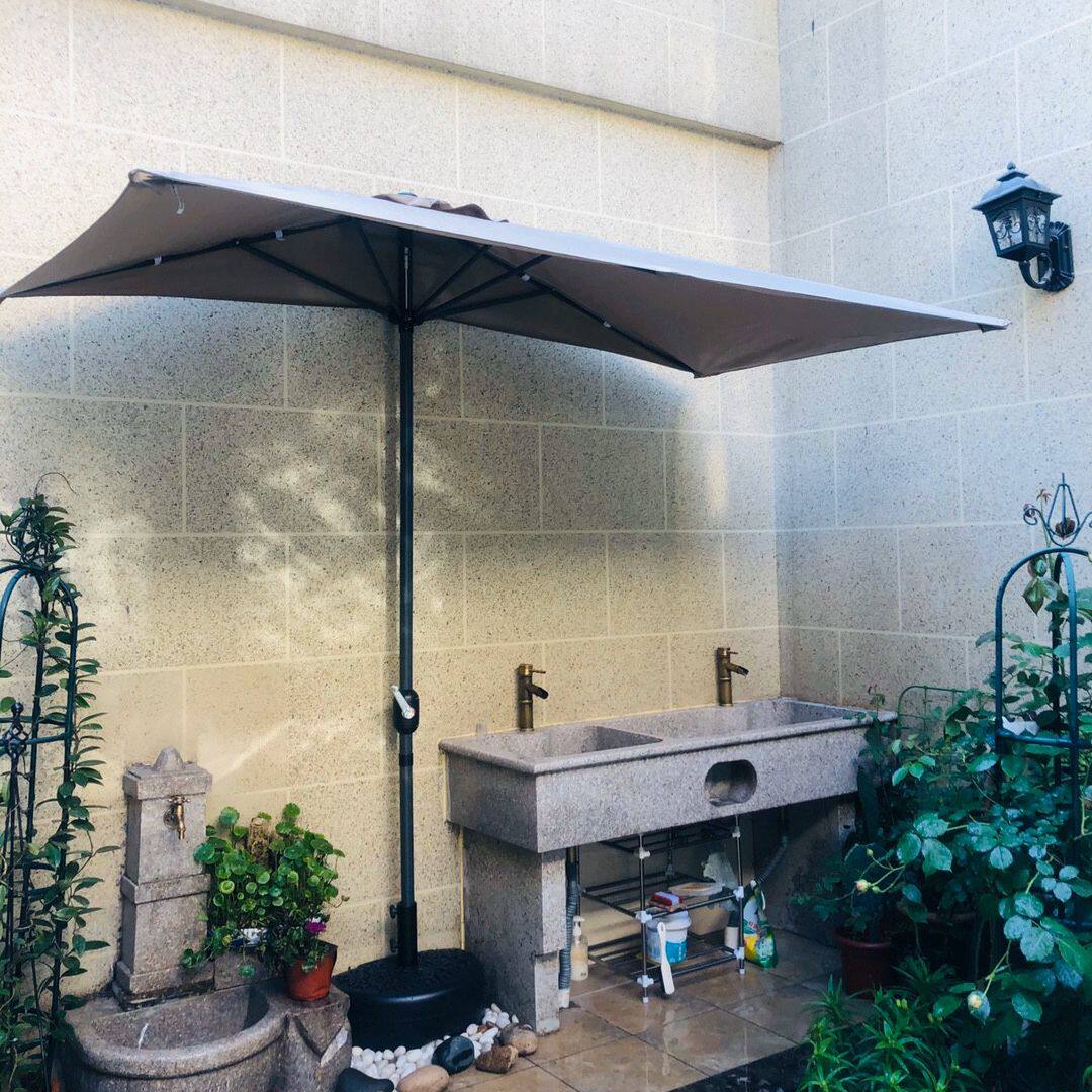 На открытом воздухе наполовину зонтик поднимается на сторону стены боковой стороны стороны боковой стороны стены сада сада, зонтик антимерелля
