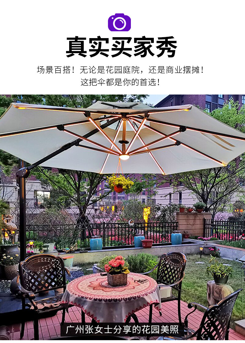 Shanglun Outdoor Umbrella Courtyard Garden Ambrella Outdoor киоски Римский зонтик со светодиодным освещением балкон 3 м большая плазма