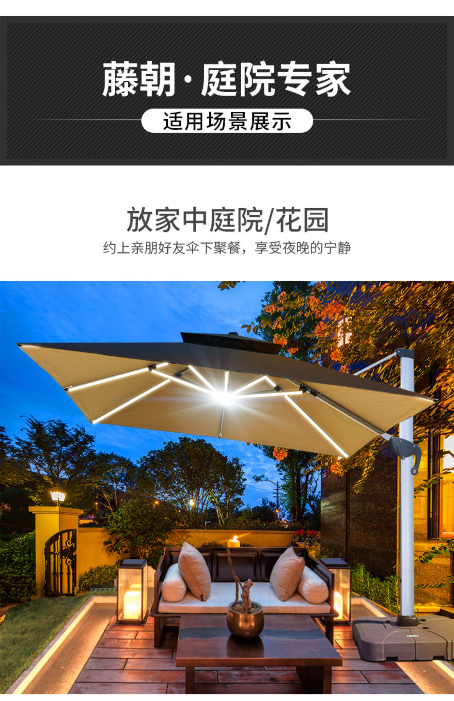Дорожный зонтик на солнечной энергии с подсветкой, уличная вилла