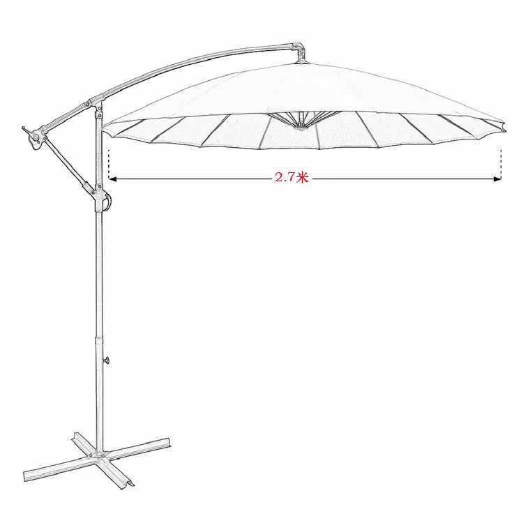 Диаметр поверхности зонтика 2,7 метра