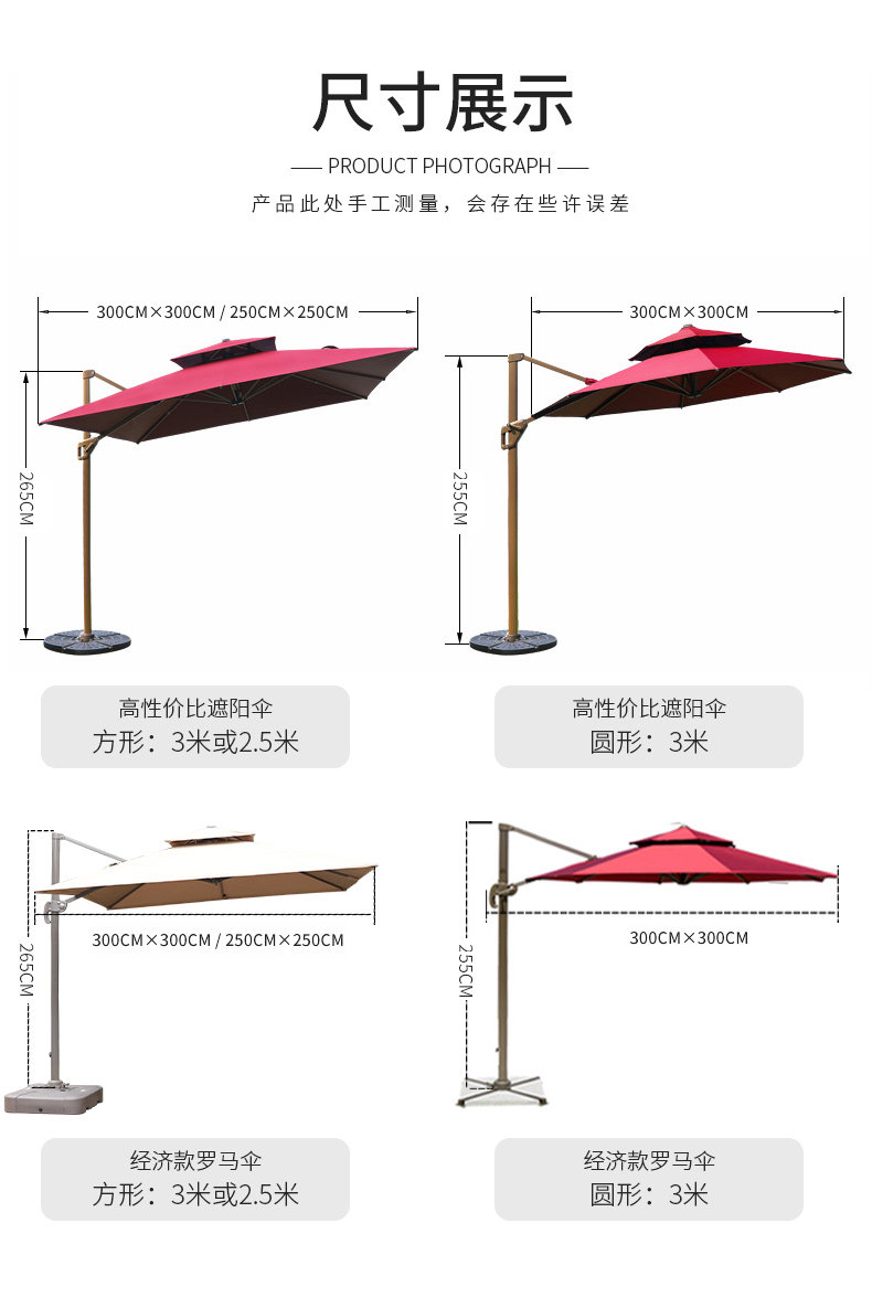 Дорожный уличный зонтик, квадратная вилла на солнечной энергии, 3м