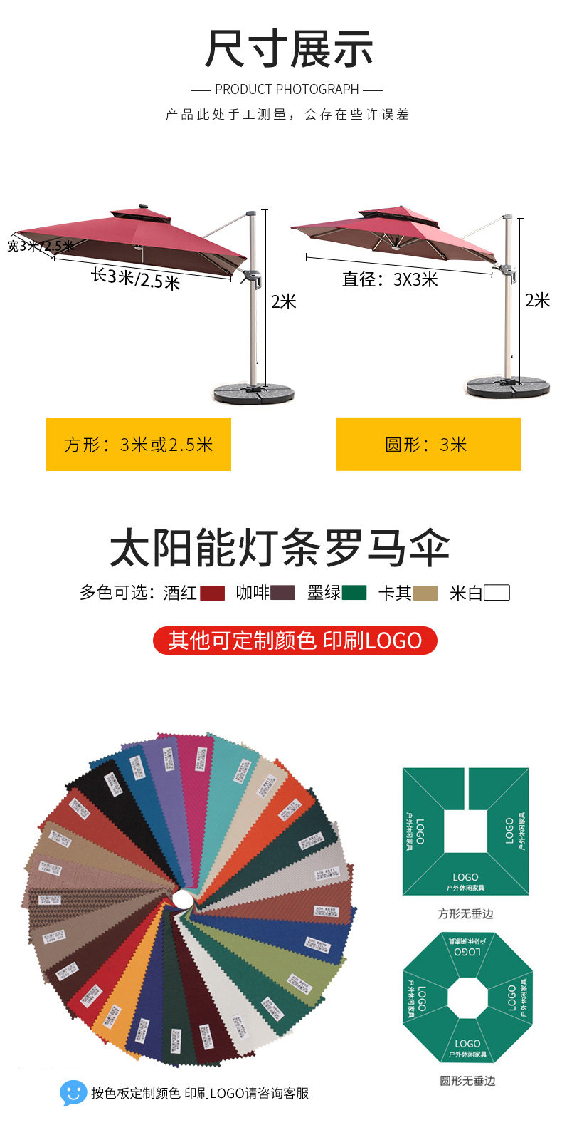Дорожный зонтик, вилла с подсветкой на солнечной энергии