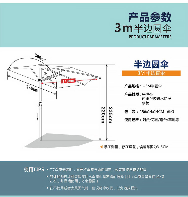 Настенный зонтик, 2м, 2.5м, защита от солнца