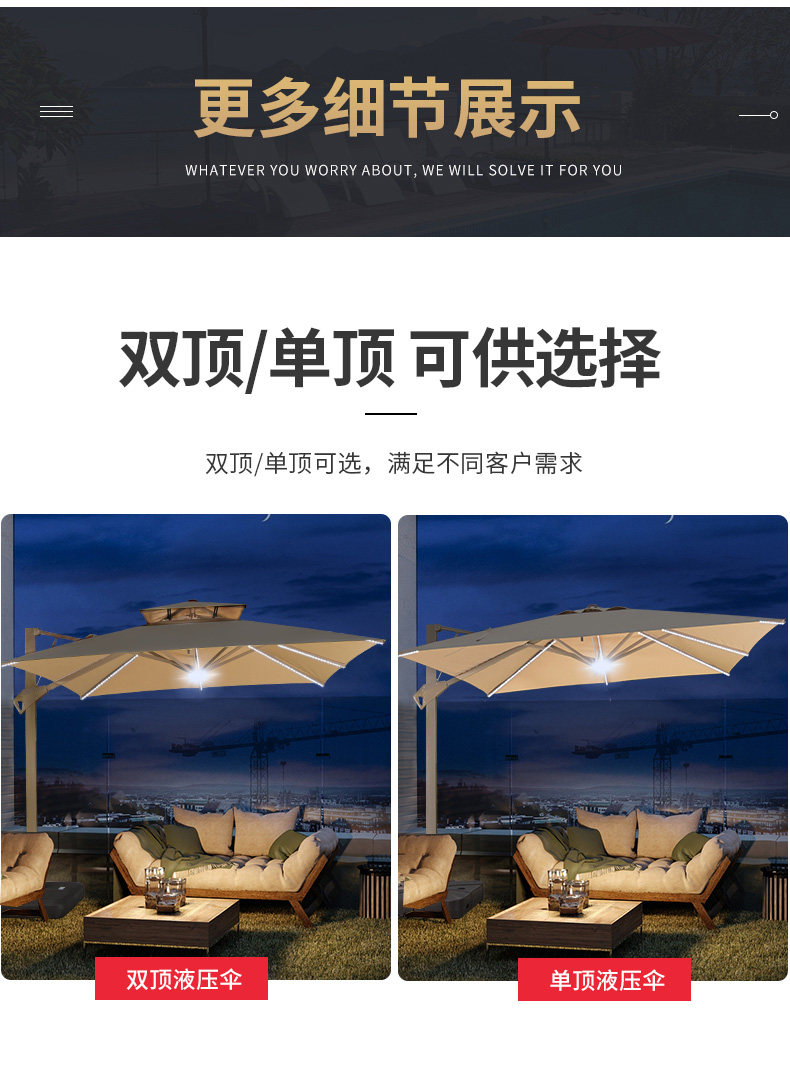 Дорожный зонтик на солнечной энергии с подсветкой, гидравлическая уличная вилла