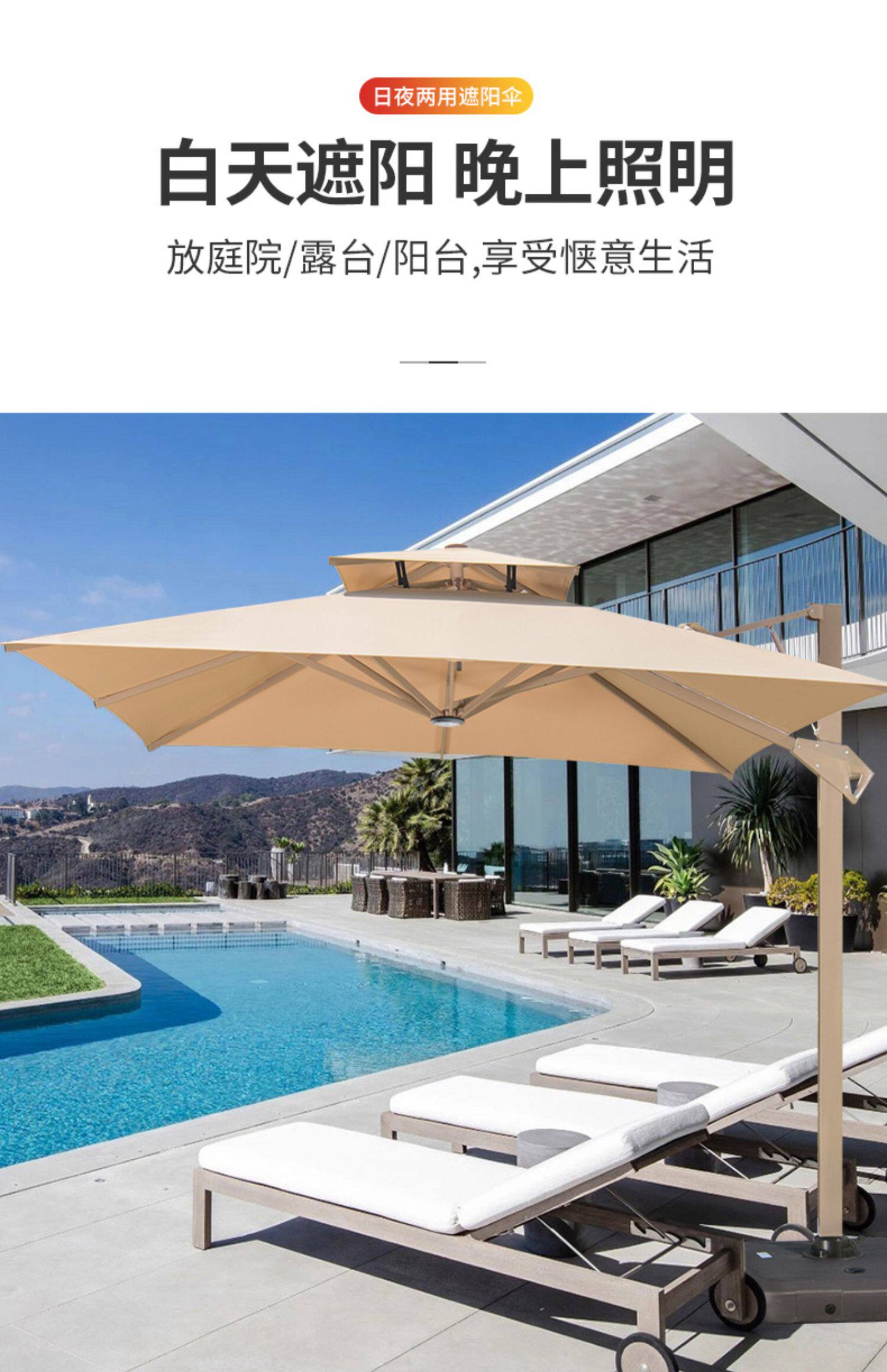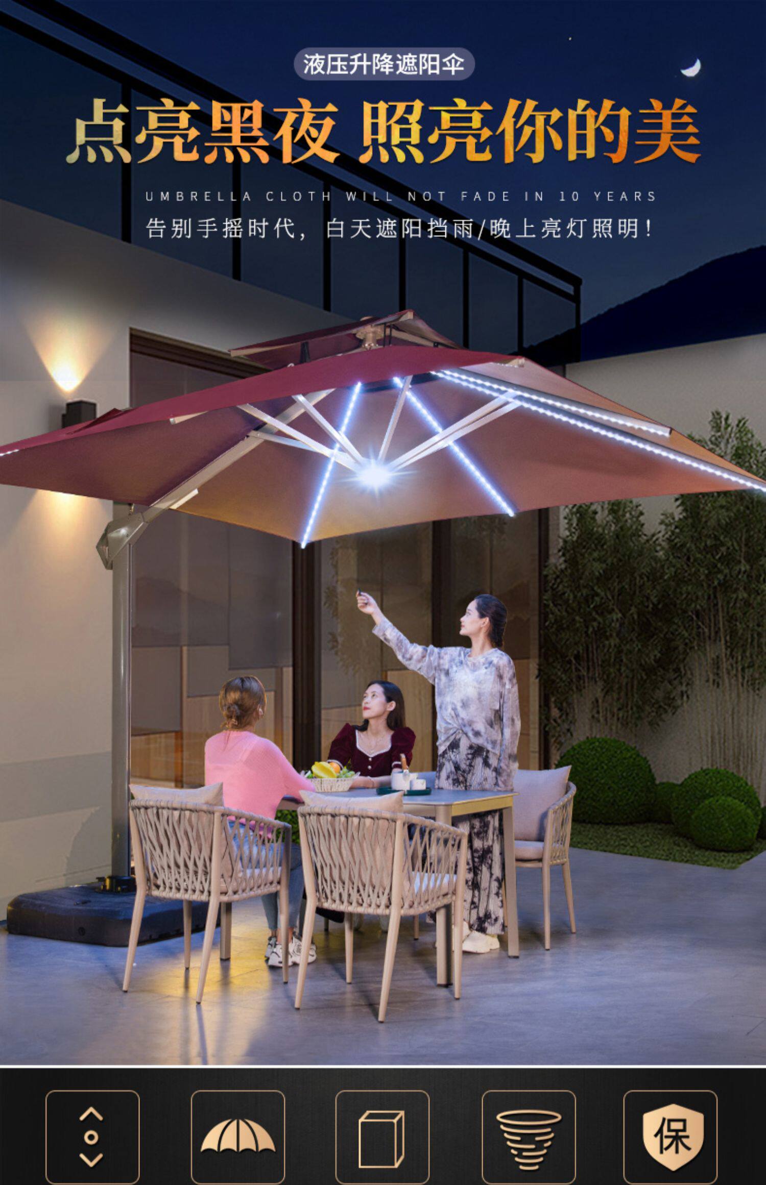 Uanmao Outdoor Umbrella с фонарями садовой плазма Lot Light Lightsing Dragon Outdoor High -End Гидравлический римский зонтик