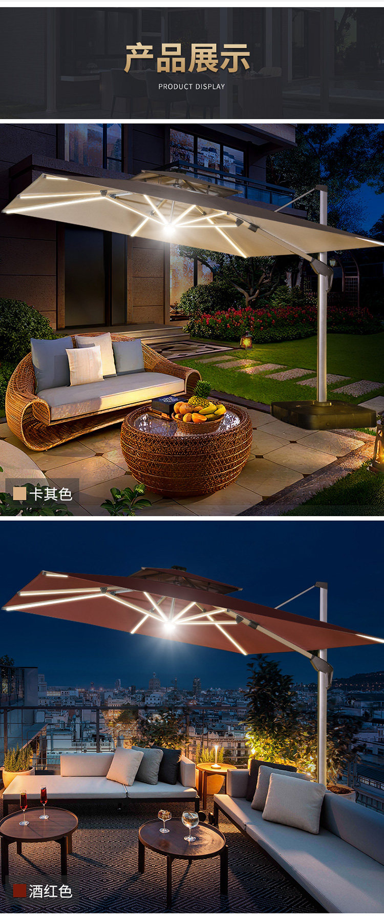 Дорожный зонтик на солнечной энергии с подсветкой, уличная вилла