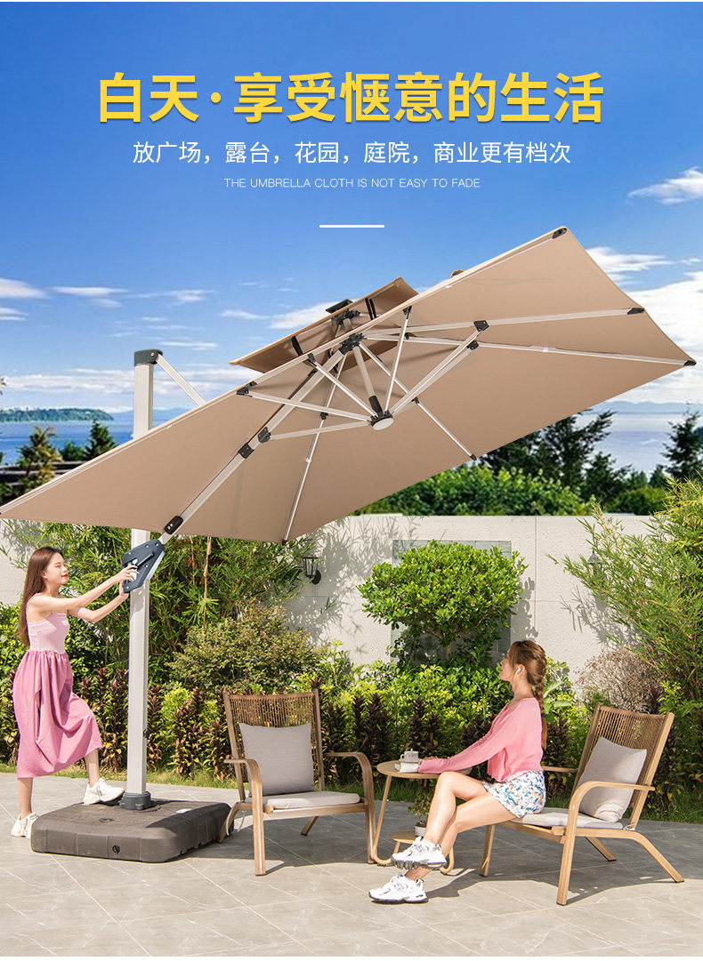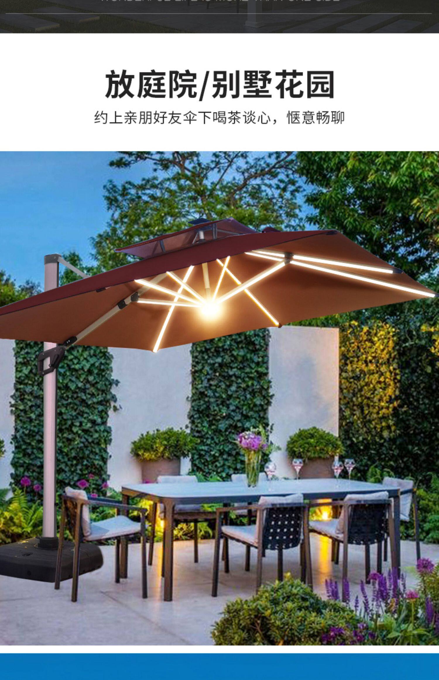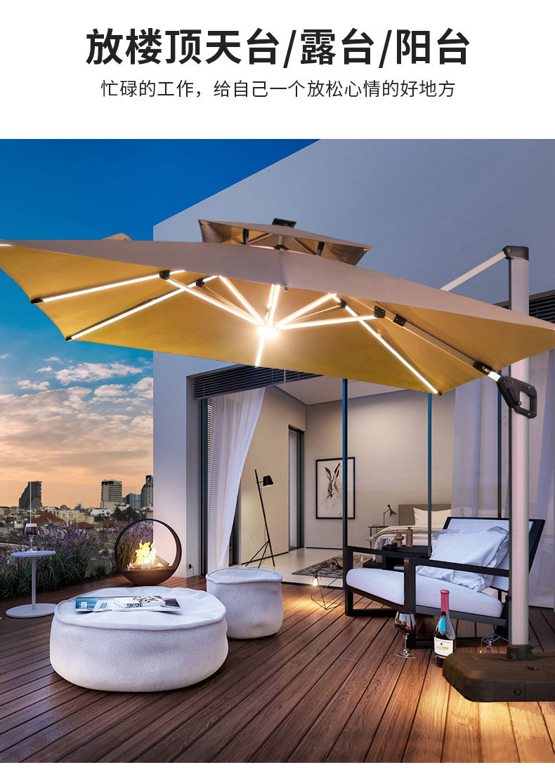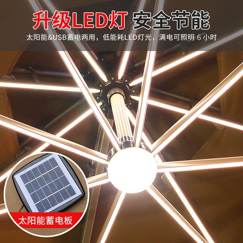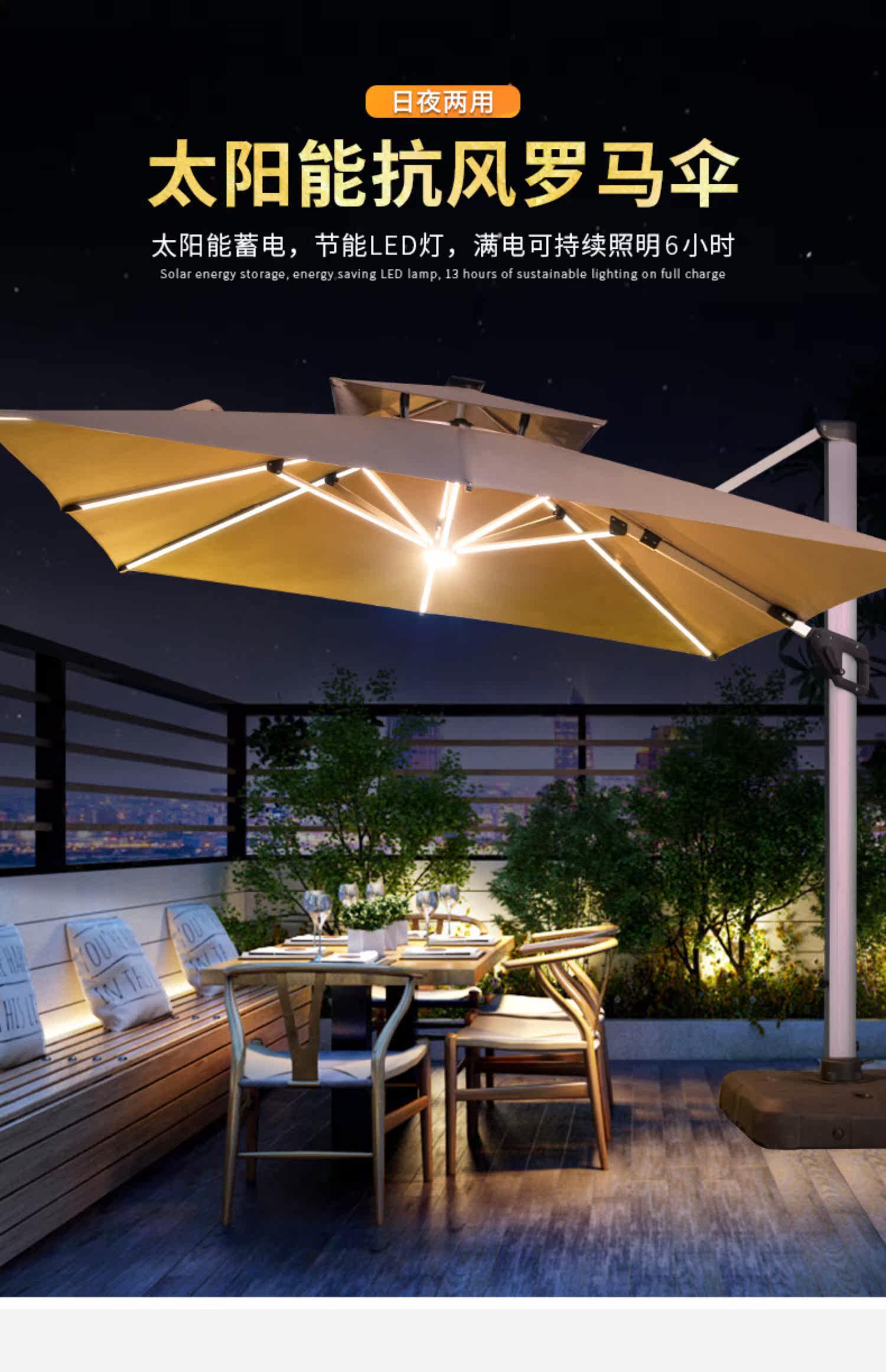 Yuanmao Outdoor Solar Umbrella Большой светодиод с огнями на открытом воздухе днем и ночью Используйте римский зонтик против ветра