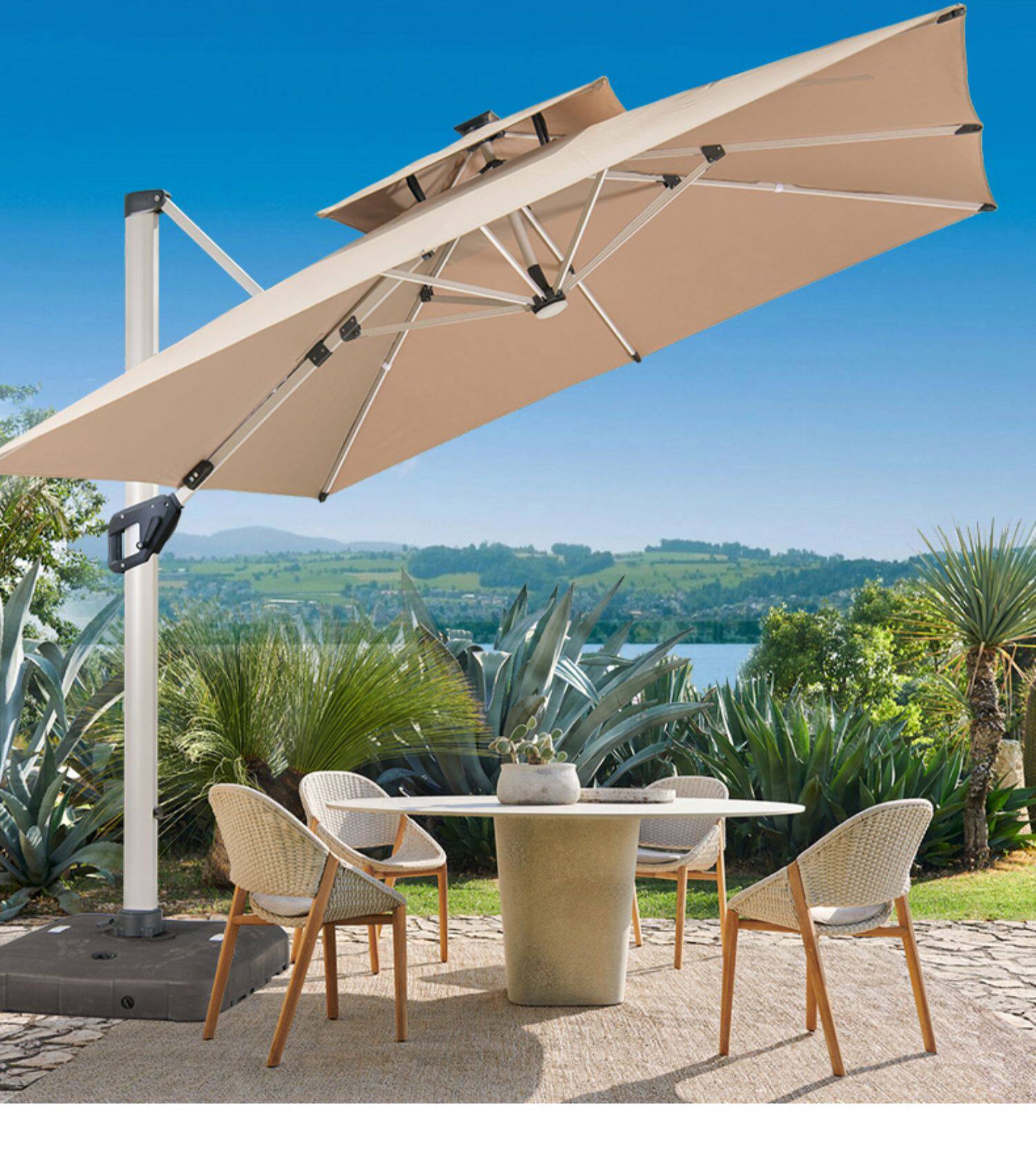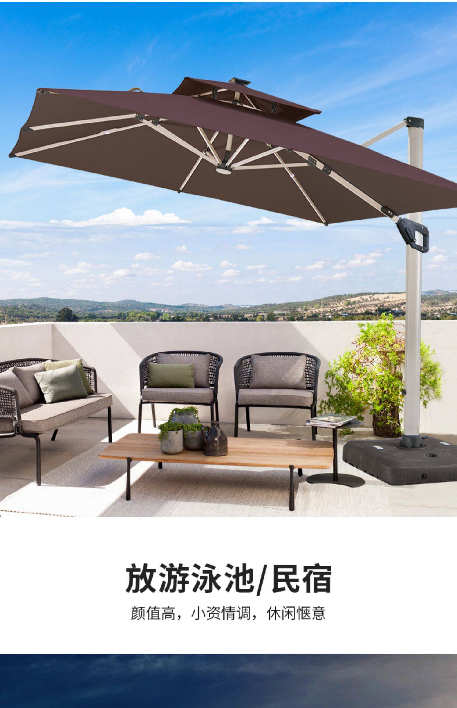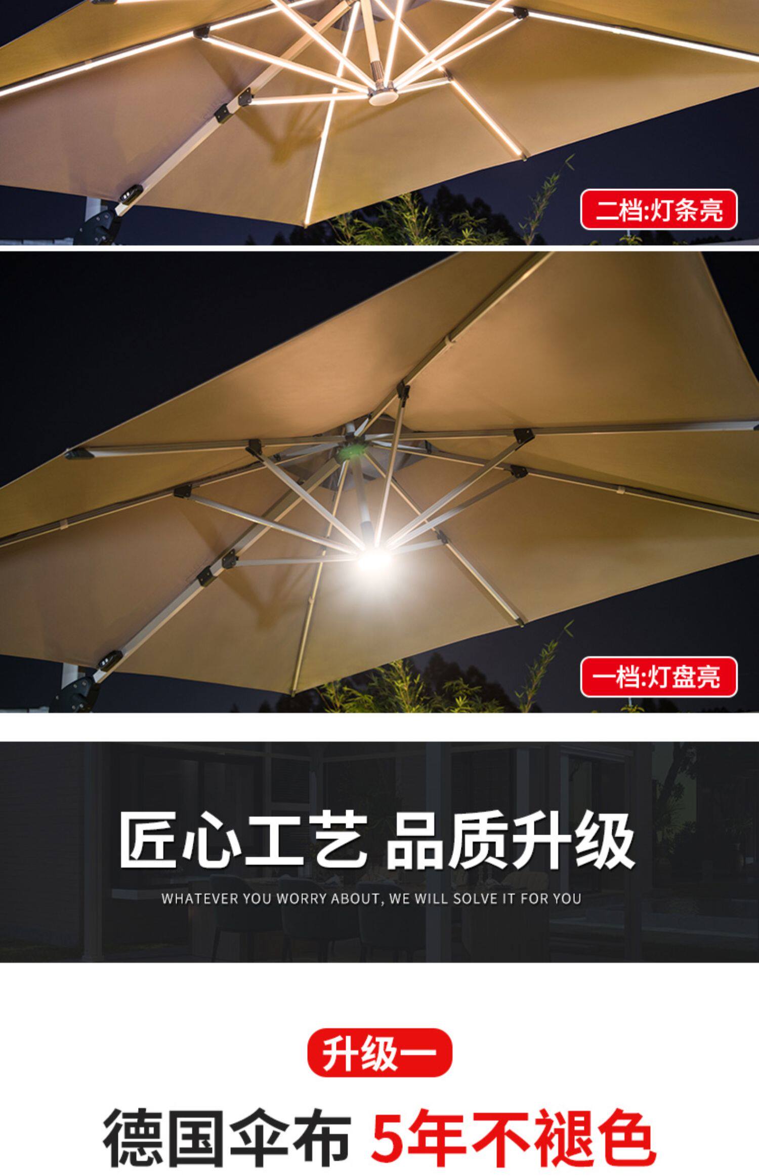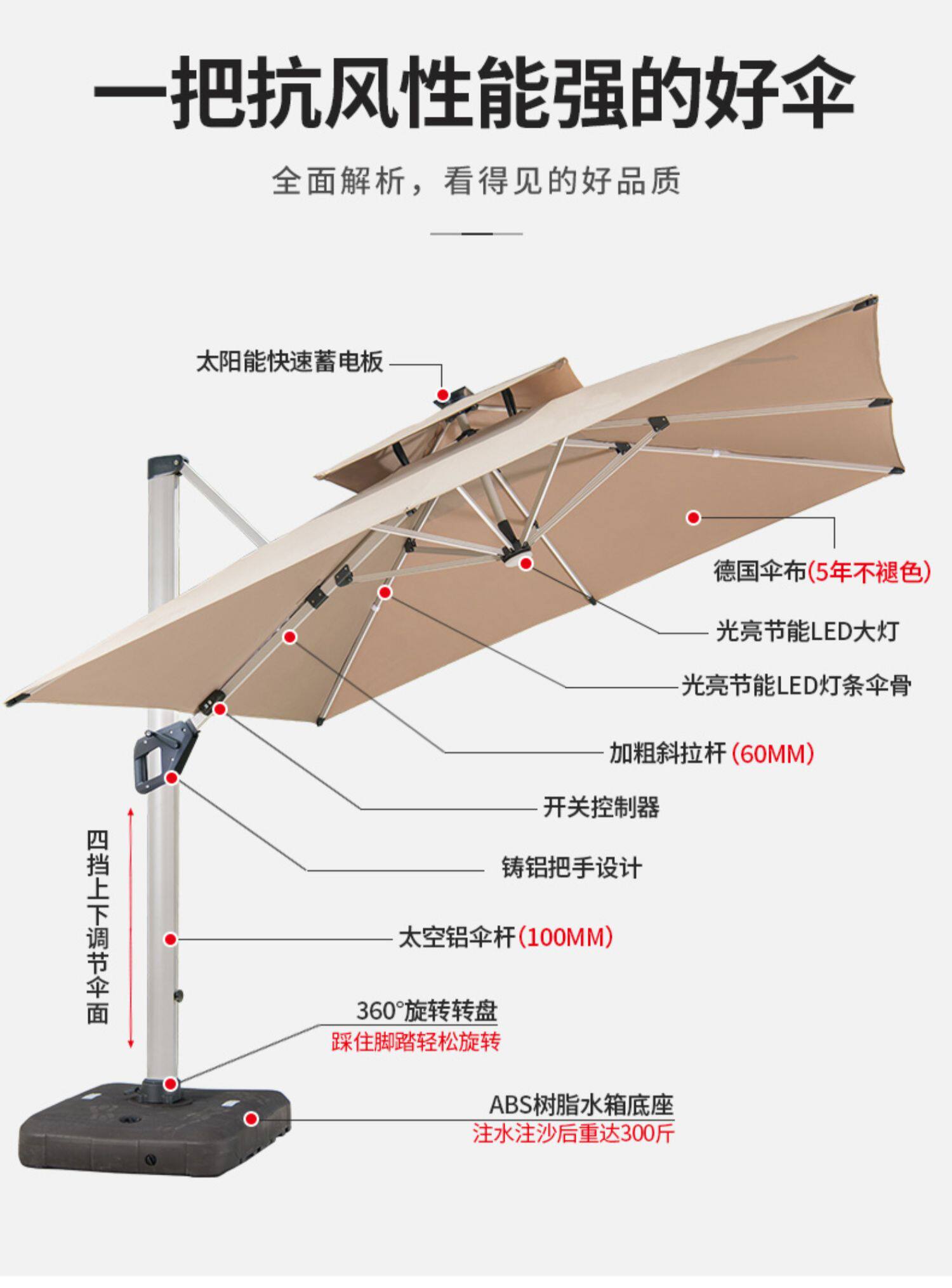Yuanmao Outdoor Solar Umbrella Большой светодиод с огнями на открытом воздухе днем и ночью Используйте римский зонтик против ветра