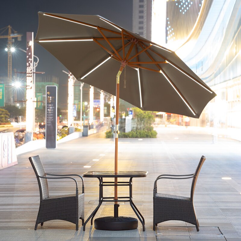 Металлический легкий зонтик из натурального дерева для коммерческого использования на солнечной энергии