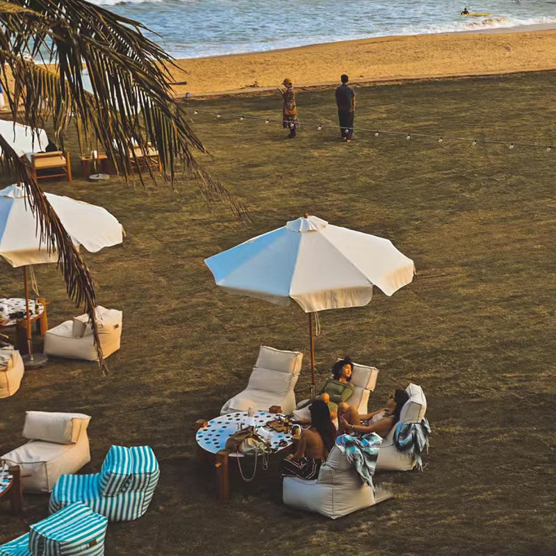 Морский пляж, солнцезащитный зонтик на открытом воздухе в саду батон