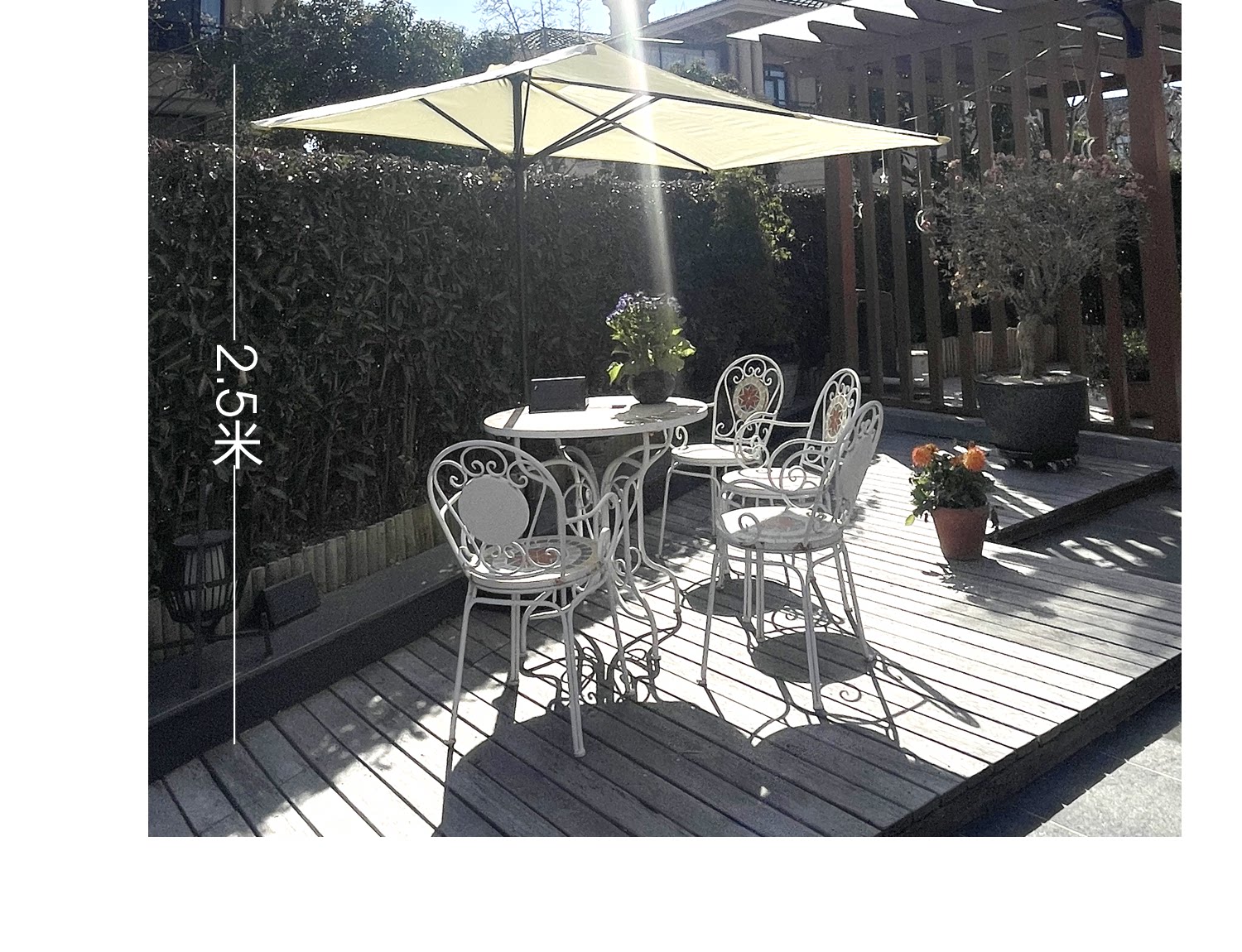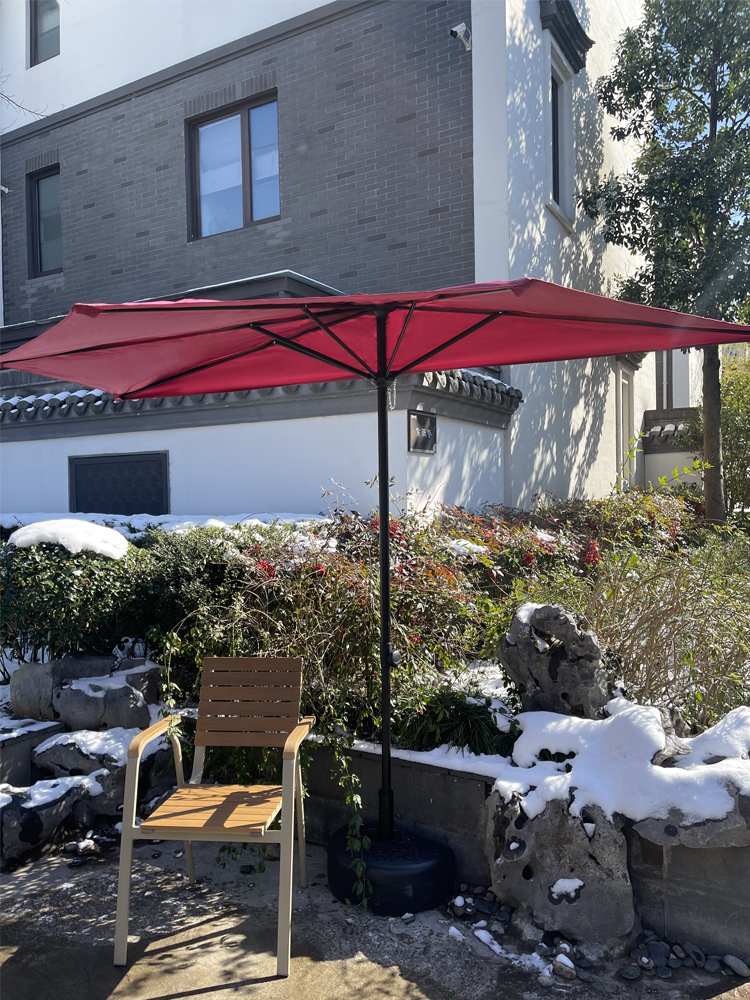 Может поднять половину зонтика и взять стену с зоном на свежем воздухе