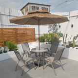 Столы на открытом воздухе и стулья с зонтиком Комбинированный чайный магазин кофейня на открытом воздухе на открытом воздухе на открытом воздухе.