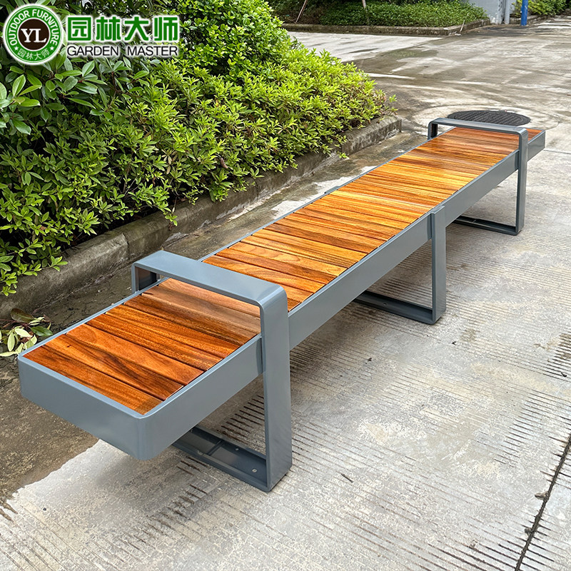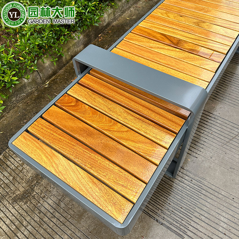 Парк открытый готовый продукт Сидящий стул Общественный сад из нержавеющей стали Парк Парк Стул на открытом воздухе Железное художественное платье с твердым деревом скамейки