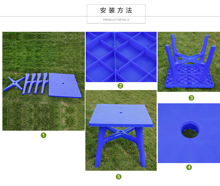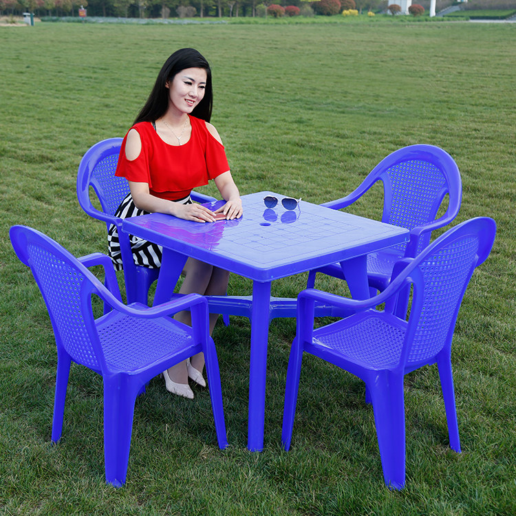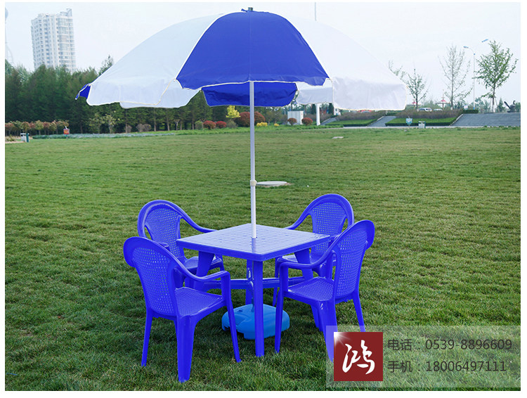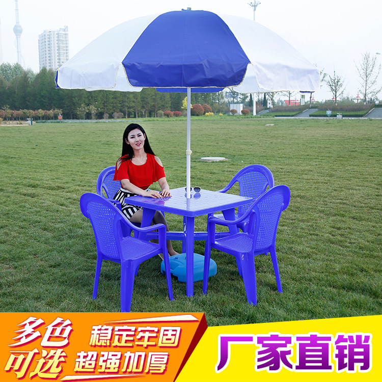 Столы на открытом воздухе и стул Комбинированные пластиковые пляжные повседневные столы и киоски для стул Пятниковые квадратные столы с зонтиком чистые материалы и стулья