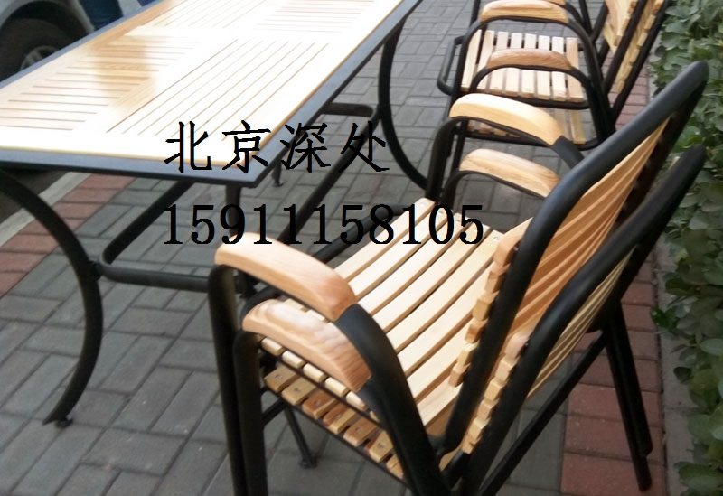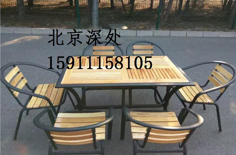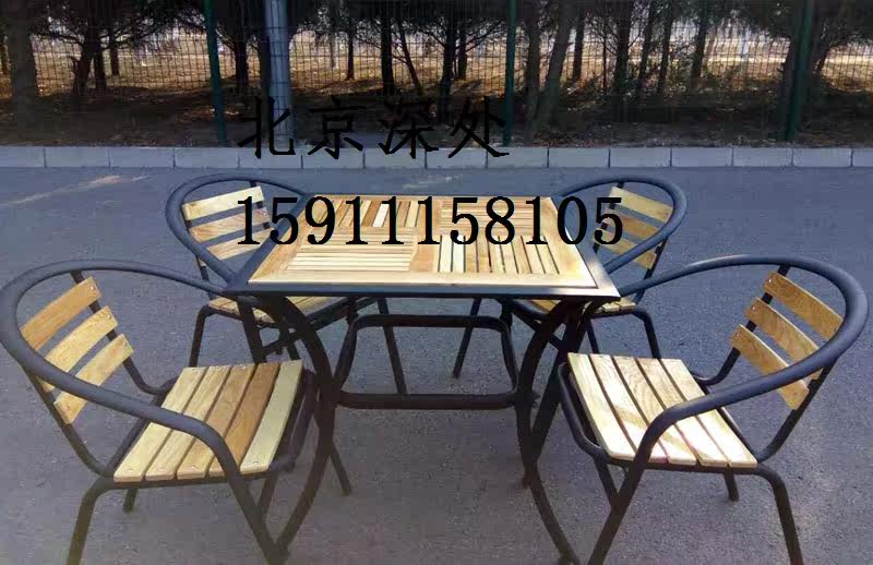Бесплатная доставка на открытом воздухе на открытом воздухе Столы с твердым деревом и стулья железная терраса Анти -коррозионное дерево двор повседневное кофейное балкон Комбинированная мебель мебель